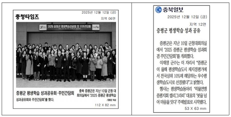 2025 증평군 문해교육 추진 전국성과 이어져