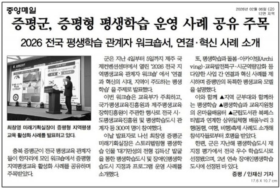 증평군 평생학습 사례 전국 공유