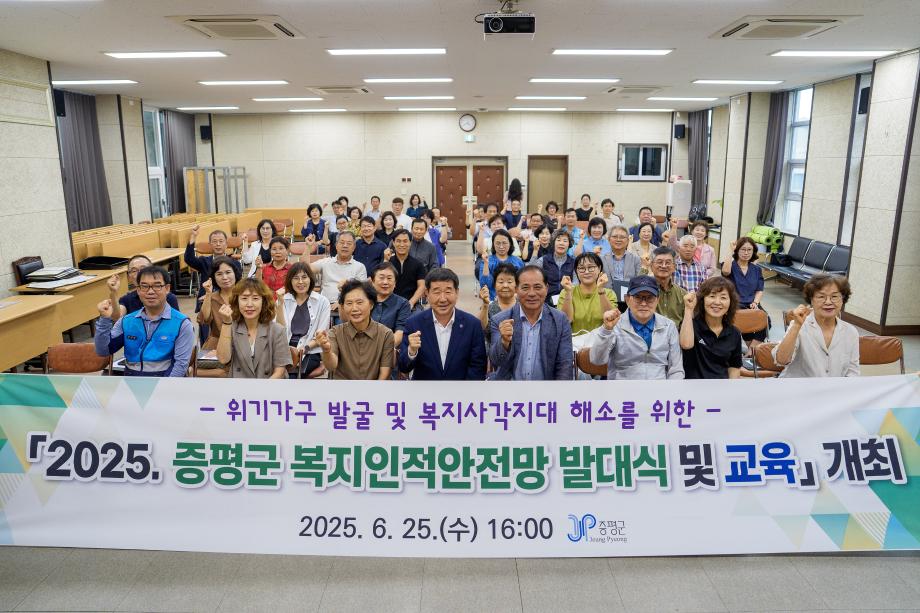 충북 증평군은 지난 25일 증평읍사무소 2층 회의실에서 ‘2025년 복지인적안전망 발대식 및 역량강화 교육’을 개최하고, 복지사각지대 발굴과 위기가구 지원을 위한 지역 밀착형 인적안전망 활동에 시동을 걸었다.