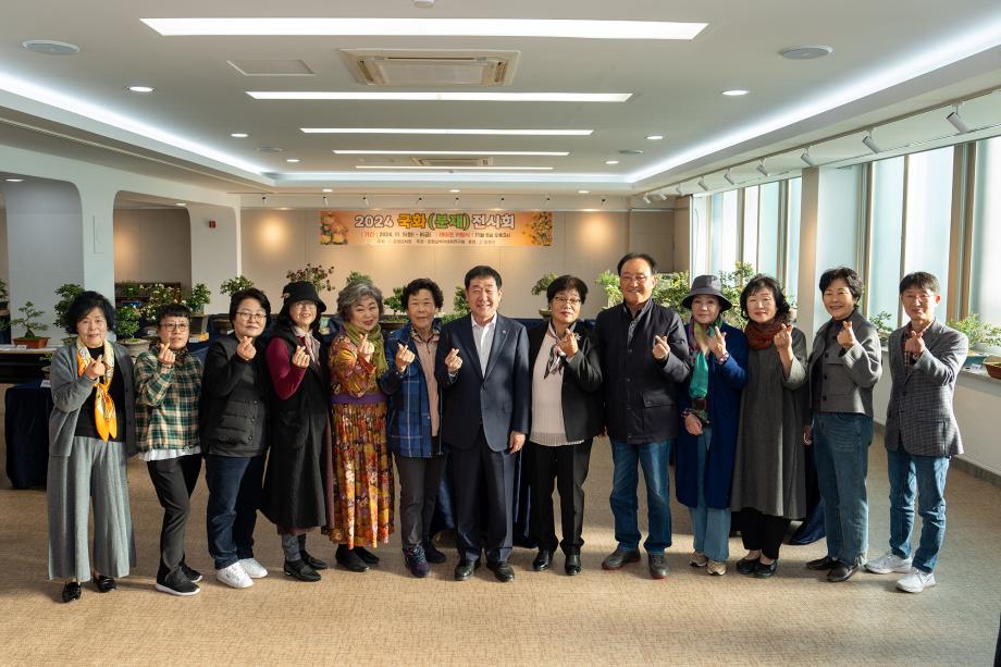 증평군 실버야생화연구회 회원들이 준비한 ‘2024 국화전시회’가 지난 5일부터 8일까지 증평문화센터 1층 갤러리에서 개최되는 가운데, 6일 오후 3시 전시회 테이프커팅 등 기념행사가 열렸다.