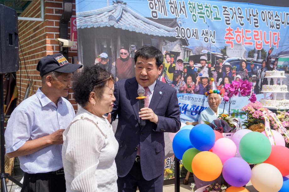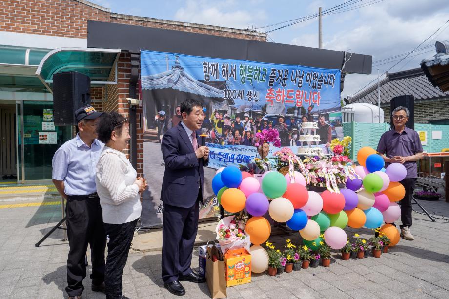 충북 증평군 도안면 화성3리 상작마을에서 김기영 어르신의 100세 생신을 맞아 뜻깊은 상수연(上壽宴)이 열렸다.