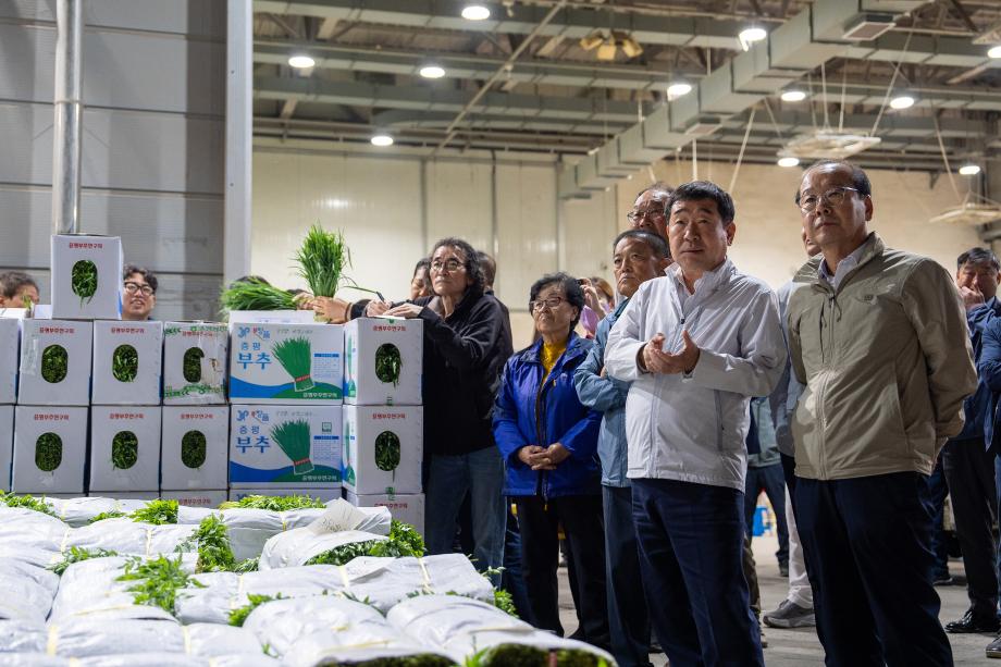 중부권 최고의 품질을 자랑하는 증평‘장뜰부추’가 4월 첫 수확을 시작해 연일 출하에 박차를 가하는 가운데, 이재영 증평군수가 지난 24일 대전 농산물 도매시장 경매 현장을 직접 찾았다.
