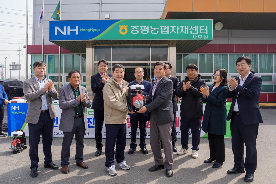 충북 증평군은 25일 증평농협 자재센터에서 증평농협(조합장 배종록)과 ‘증평군-농협 지자체 협력사업 농기계(비료살포기) 전달식’을 가졌다.