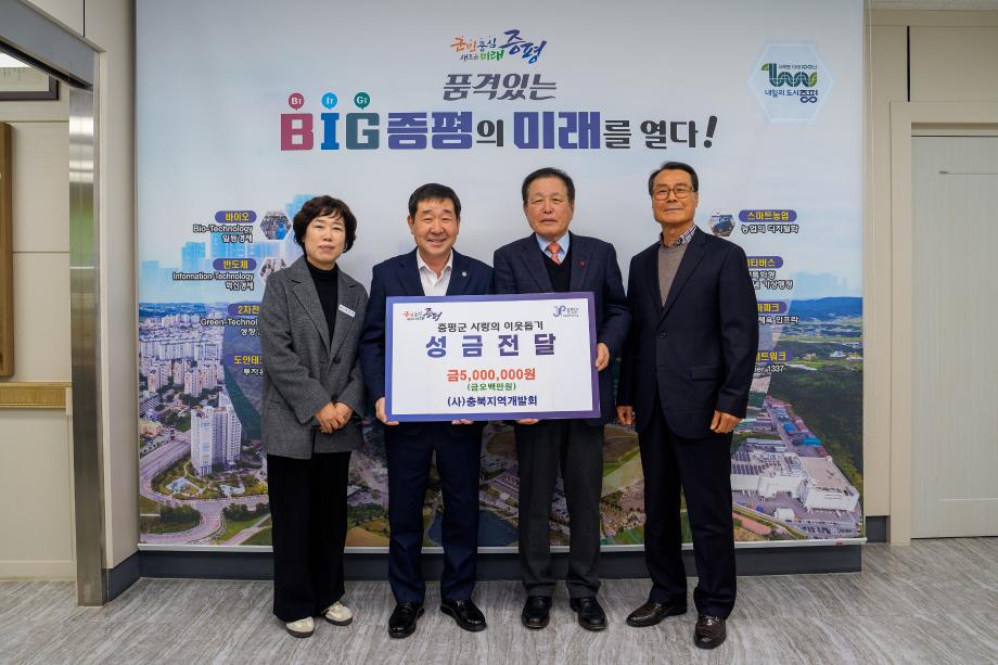 충북지역개발회, 증평군에 이웃돕기 성금 500만원 기탁