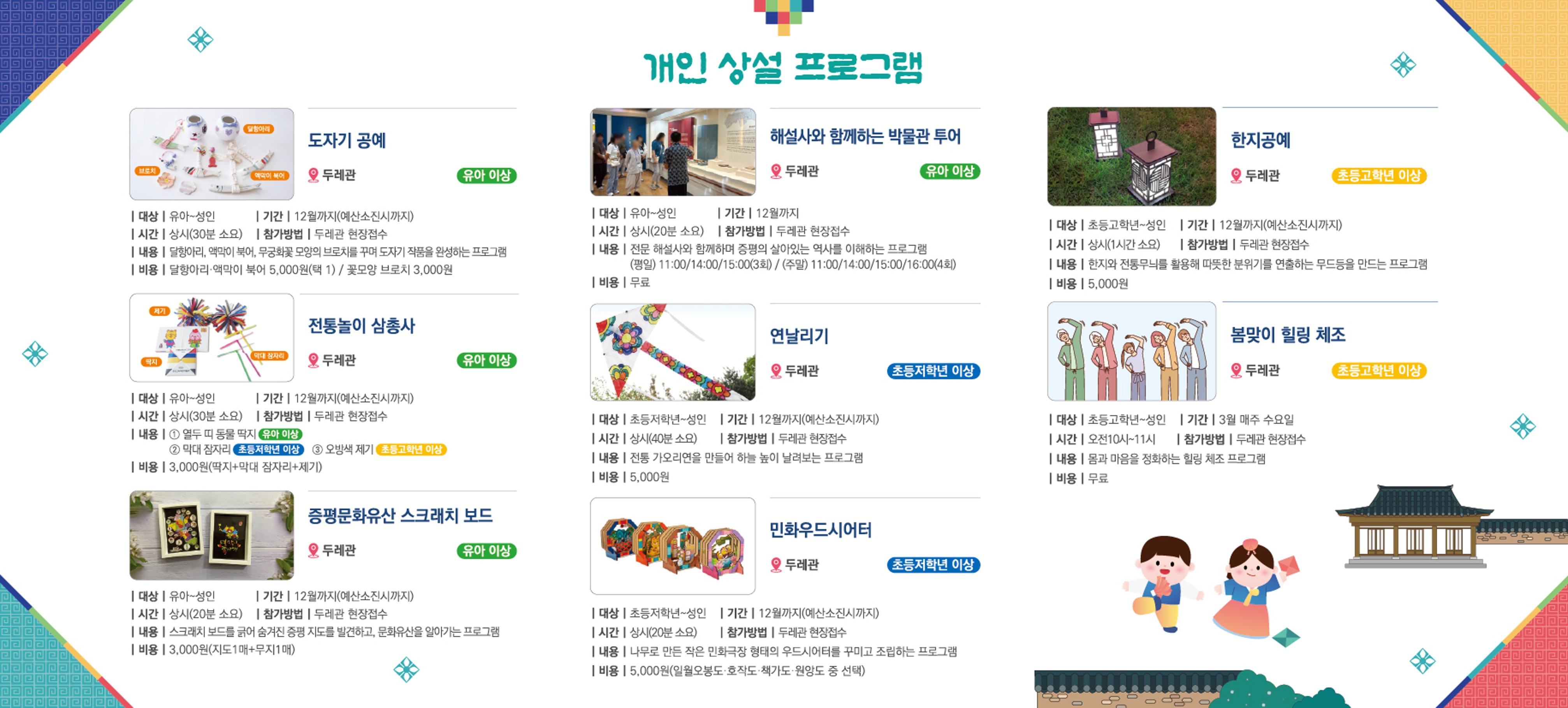 ※ 개인 상설 프로그램은 예약없이 현장접수만 가능합니다.