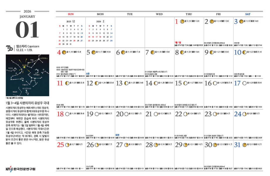 2026년 천문력이 발행되었습니다.