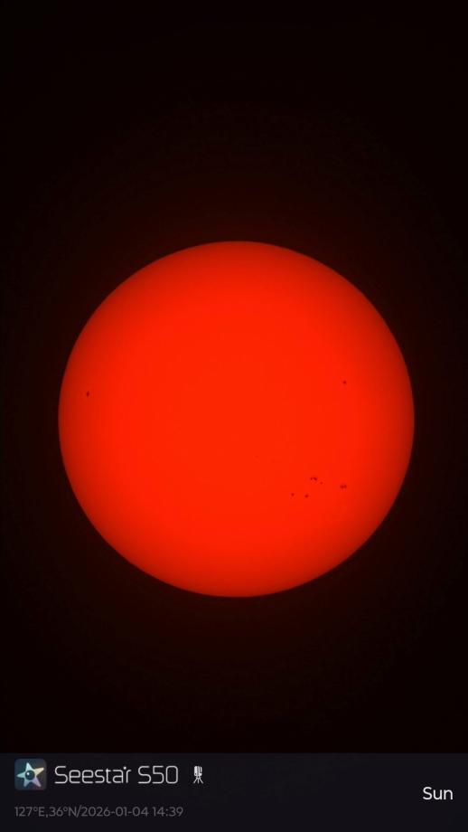 근일점을 맞아, 좌구산천문대에서도 스마트 천체망원경을 이용해 태양 사진을 찍어보았습니다.
