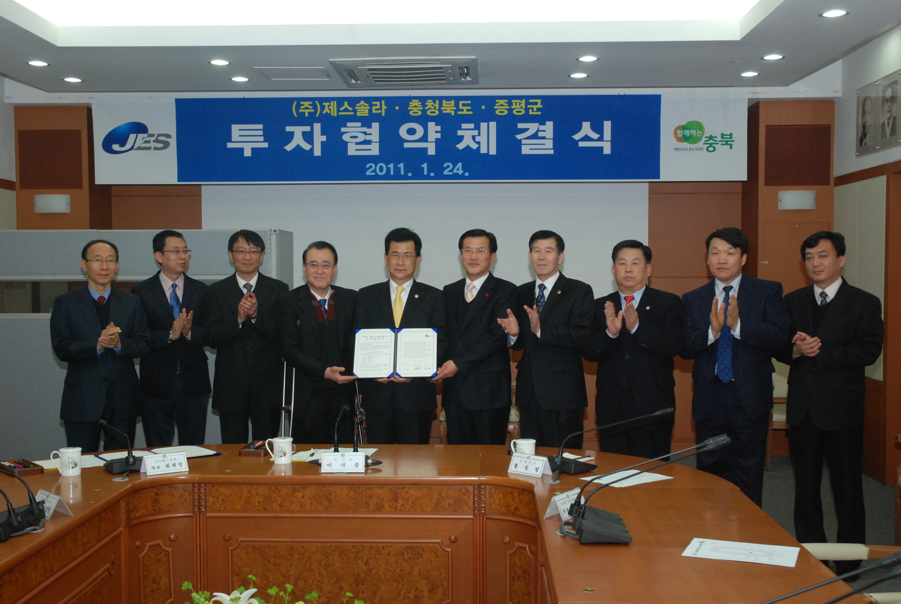 1.24(월) 충북도청 소회의실에 열린 (주)제스솔라-충청북도-증평군간의 투자협약식에 참석