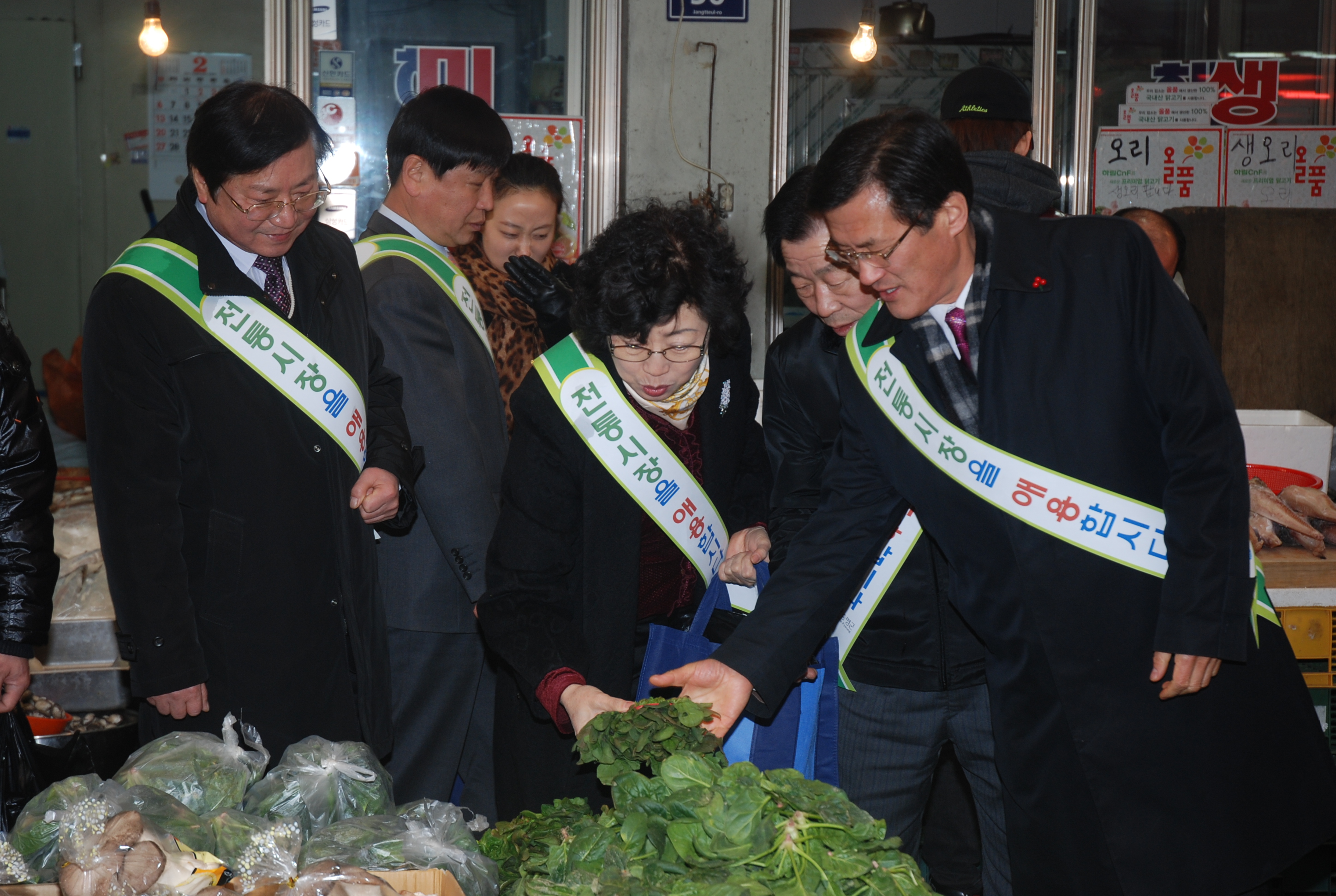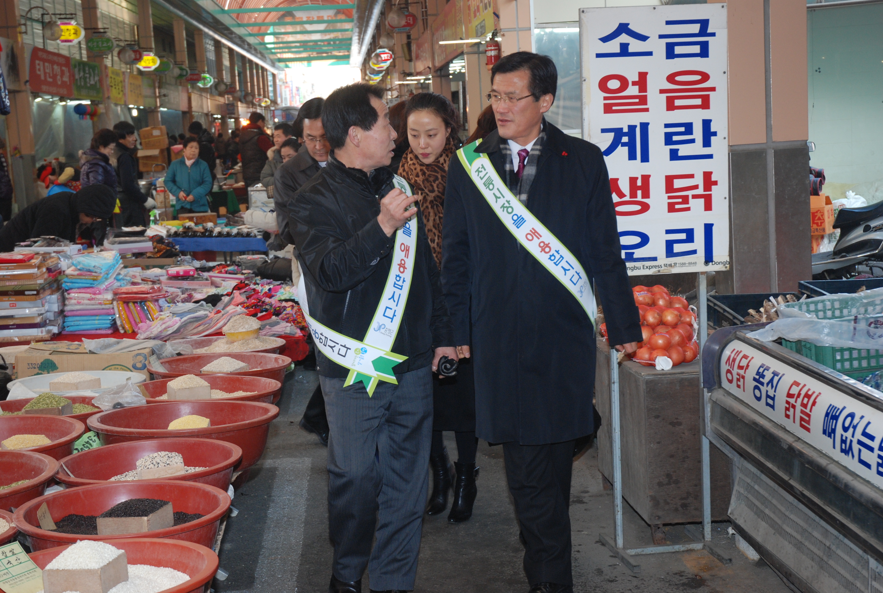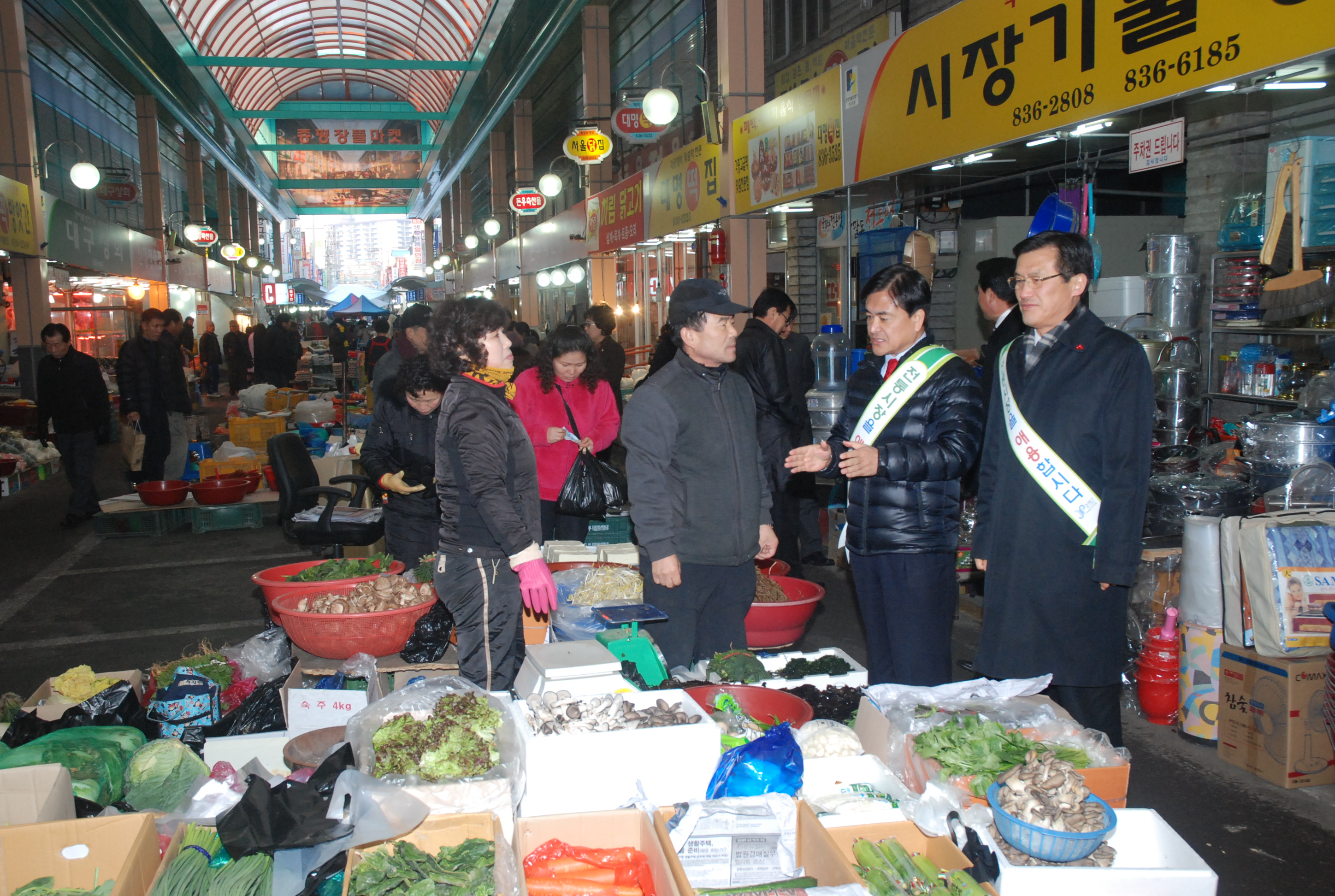 2.1(화) 민속 고유의 명절 설을 맞아 직원 및 지역 기관, 사회단체 회원들과 함께 재래시장 장보기 행사 실시하고 상인들을 격려
