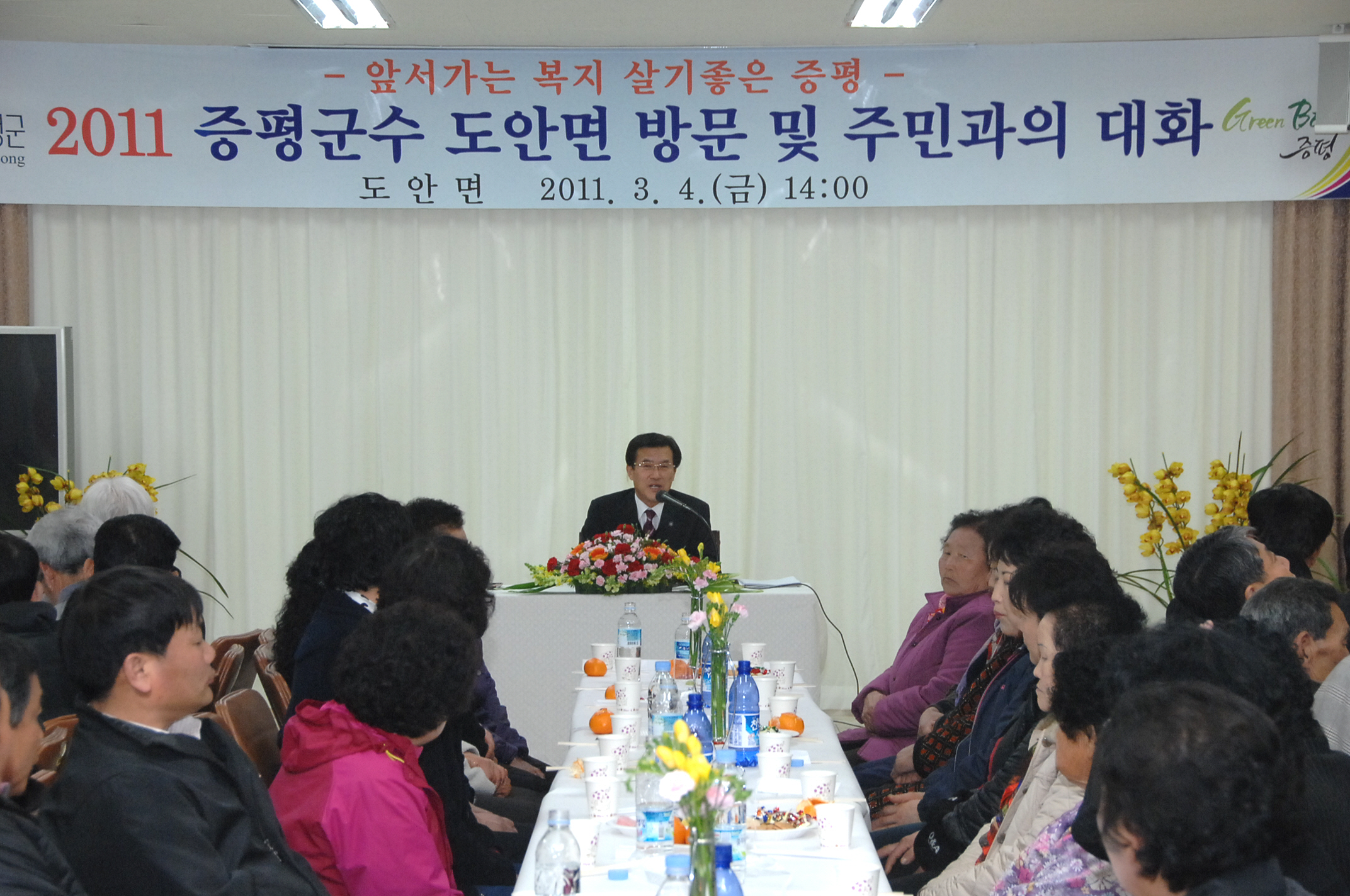 3월3일과 4일 양일간 증평읍과 도안면을 방문해 금년도 주요 사업을 설명하고 주민과의 대화시간을 갖는 등 읍·면 순방 실시