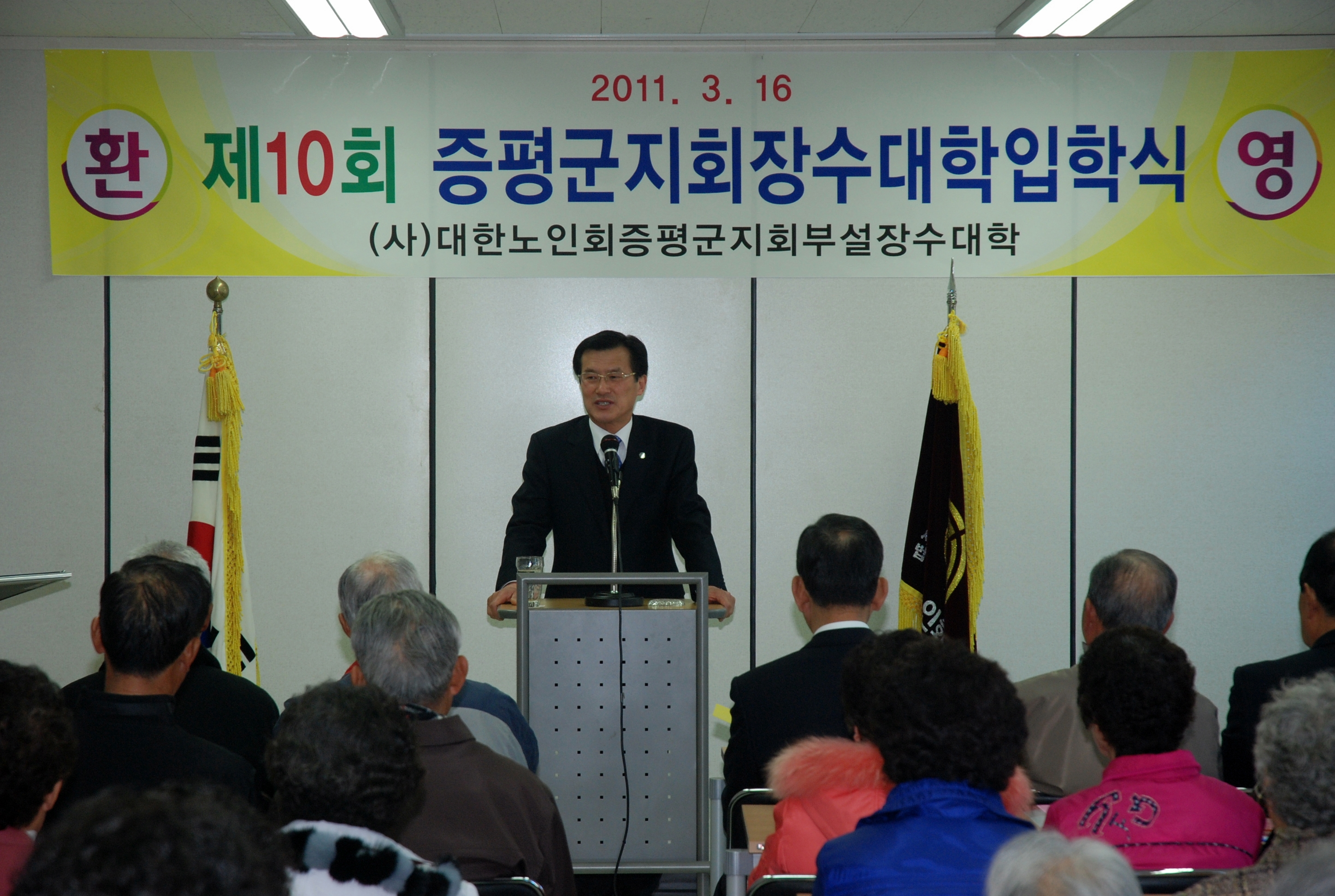- 증평군노인복지관에서 열린 (사)대한노인회증평군지회 장수대학 입학식에 참석, 축사을 하시고