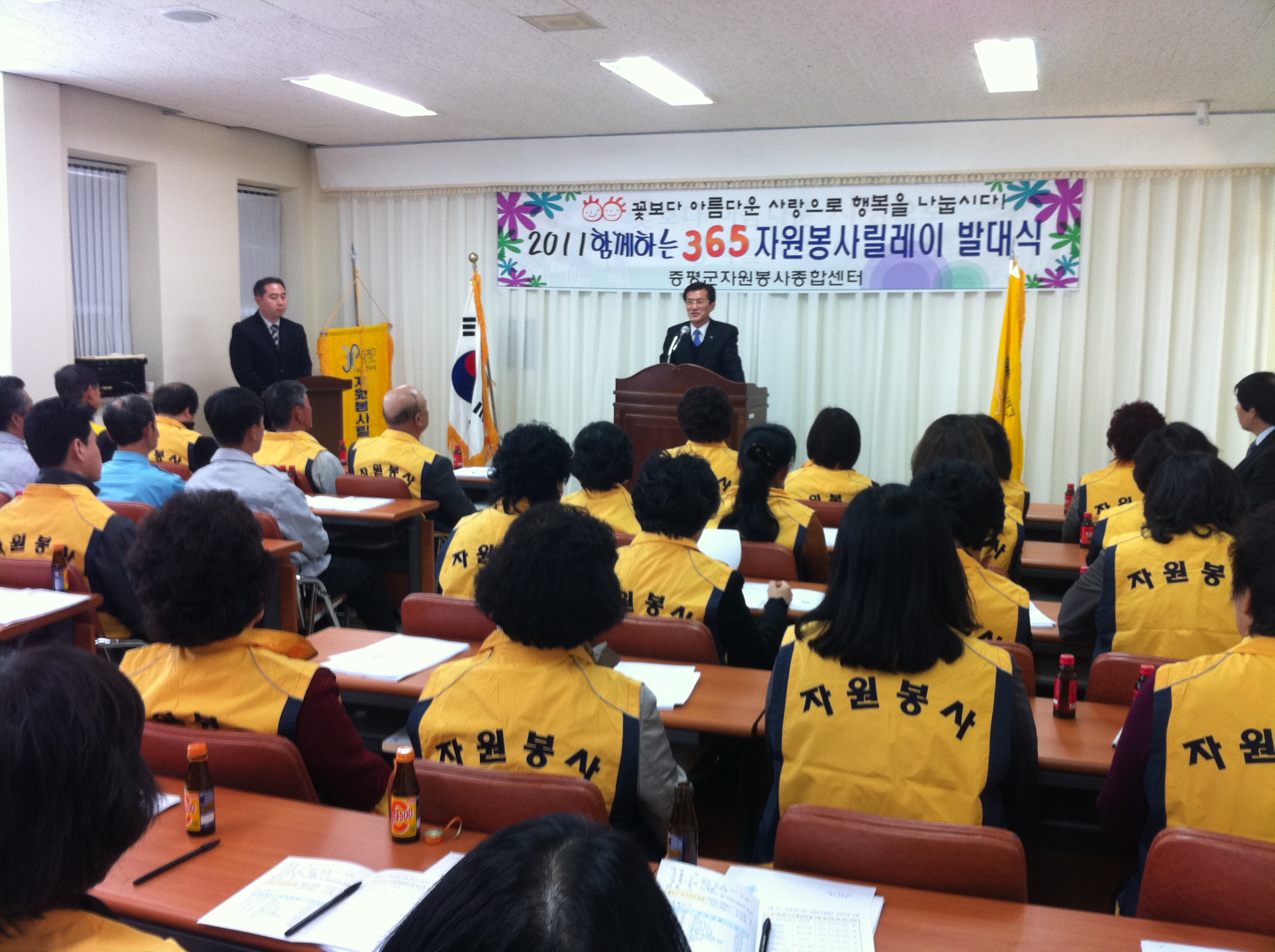 증평군자원봉사종합센타에서 열린 [증평군자원봉사릴레이발대식]에 참석, 인사말씀 및 참여단체 회원 격려
