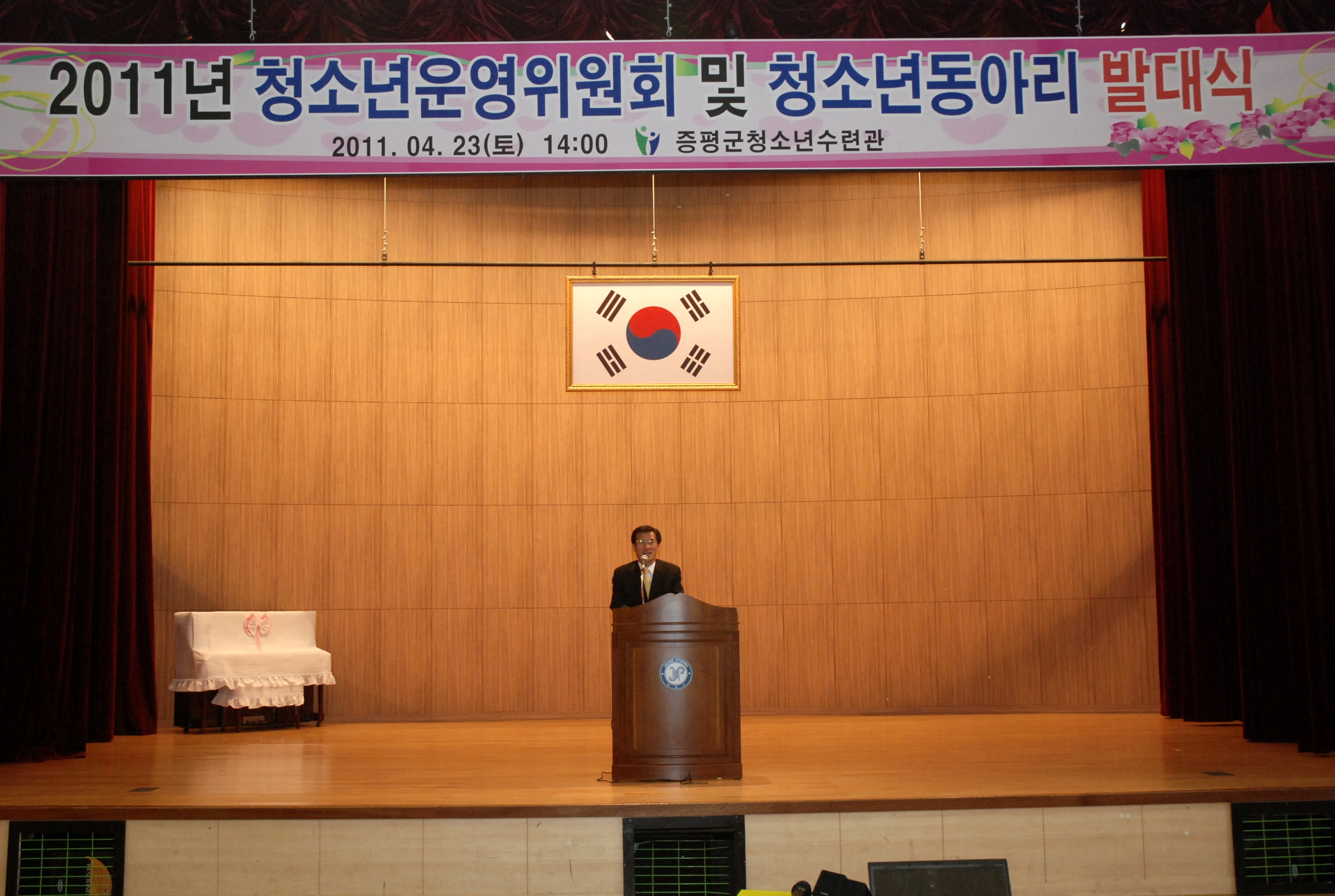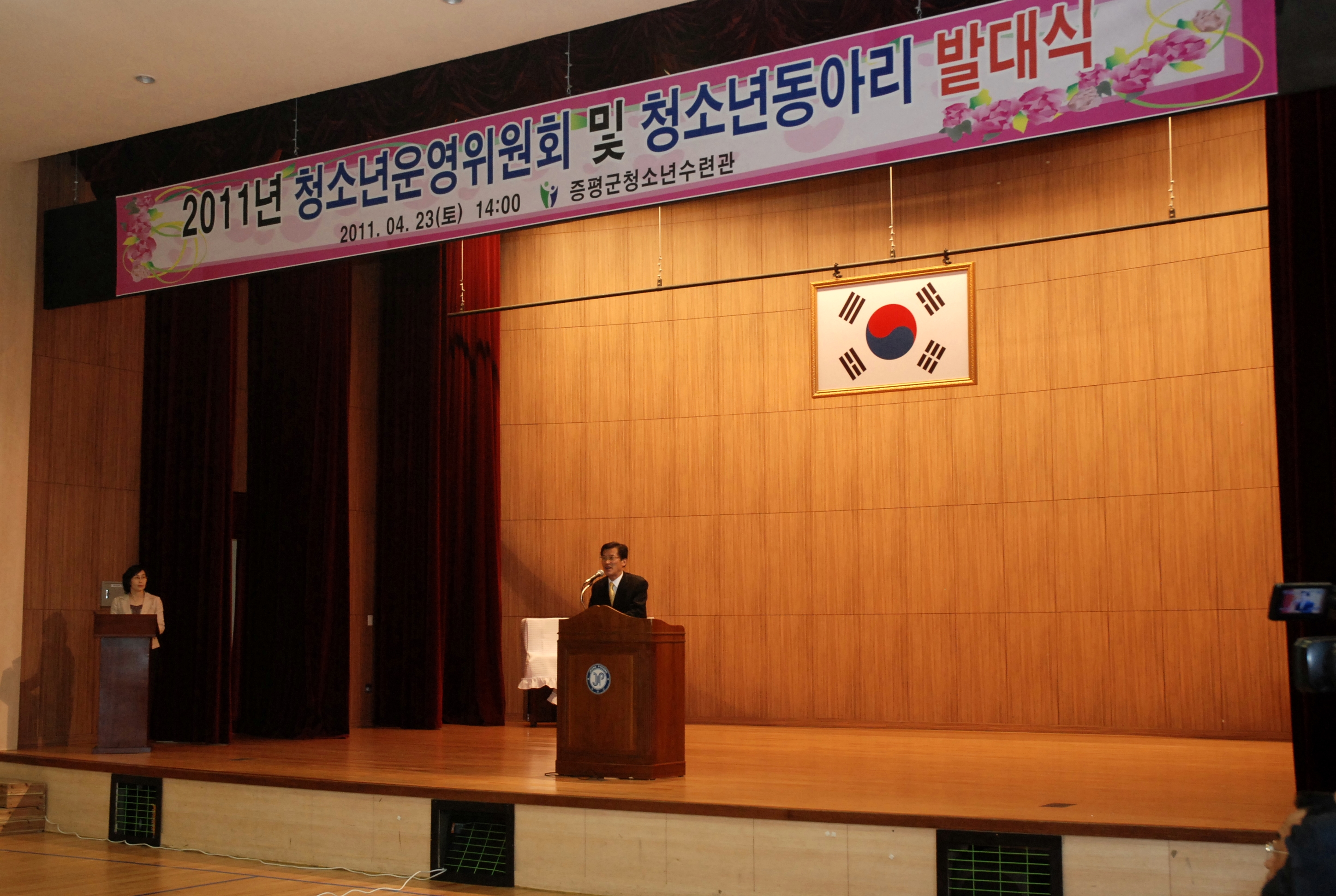 4.23(토) 청소년수련관 개강당에서 열린 "청소년운영위원회 및 동아리 발대식"에 참석, 축사 및 학생 격려