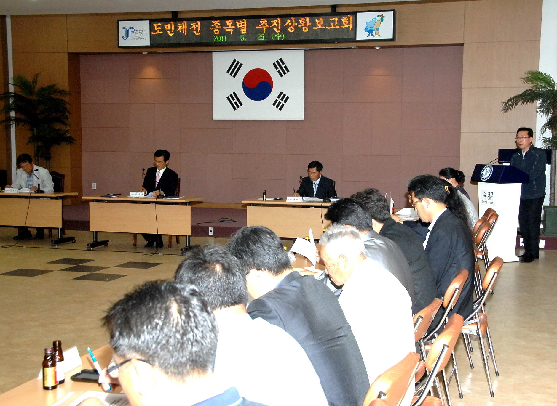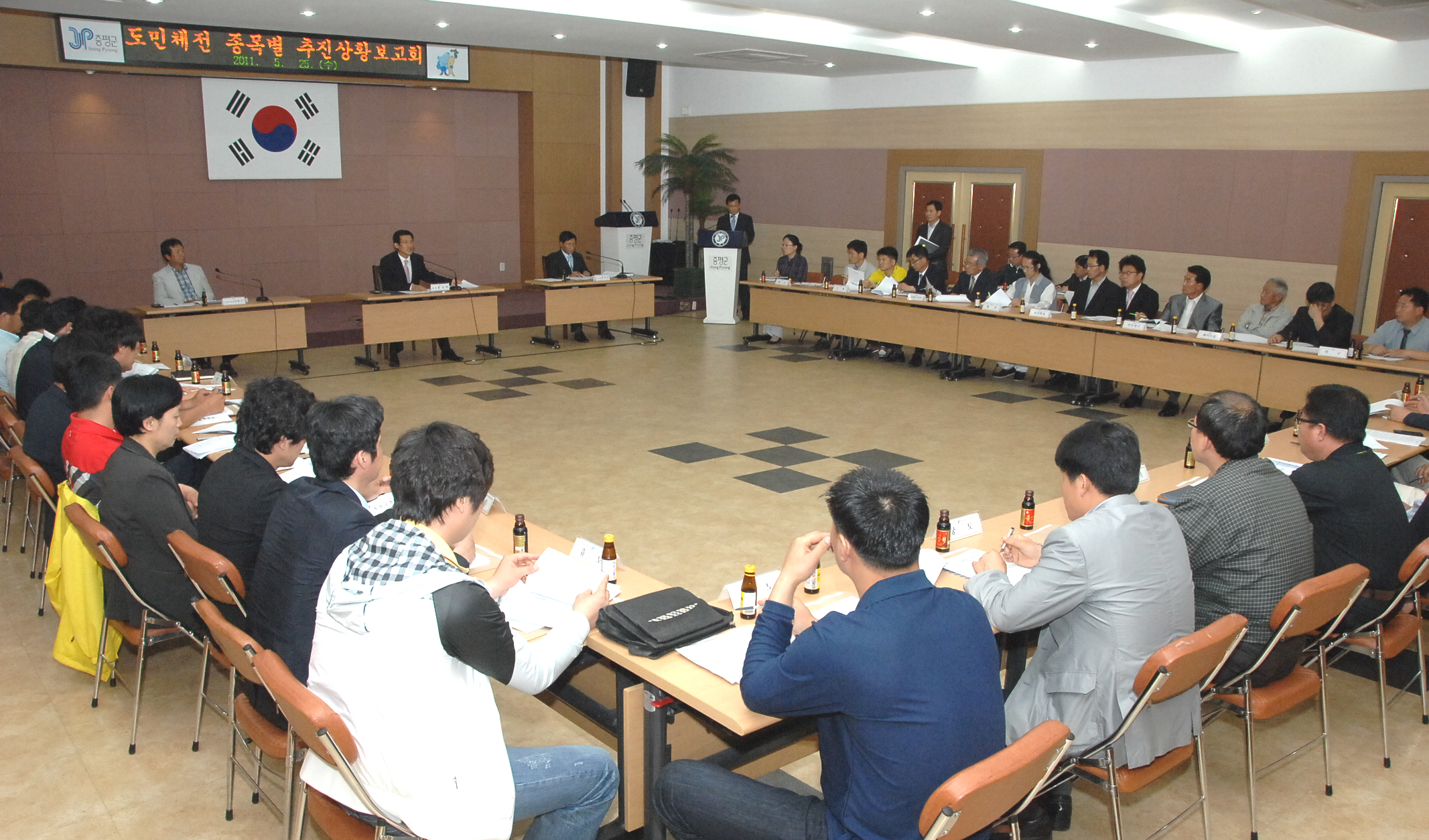 5.25(수) 군청 2층 대회의실에서 체육회 임원과 종목별 부장 및 담당 공무원 등 50여명이 참석한 가운데 도민체전 종목별 추진상황 최종 보고회 주재
