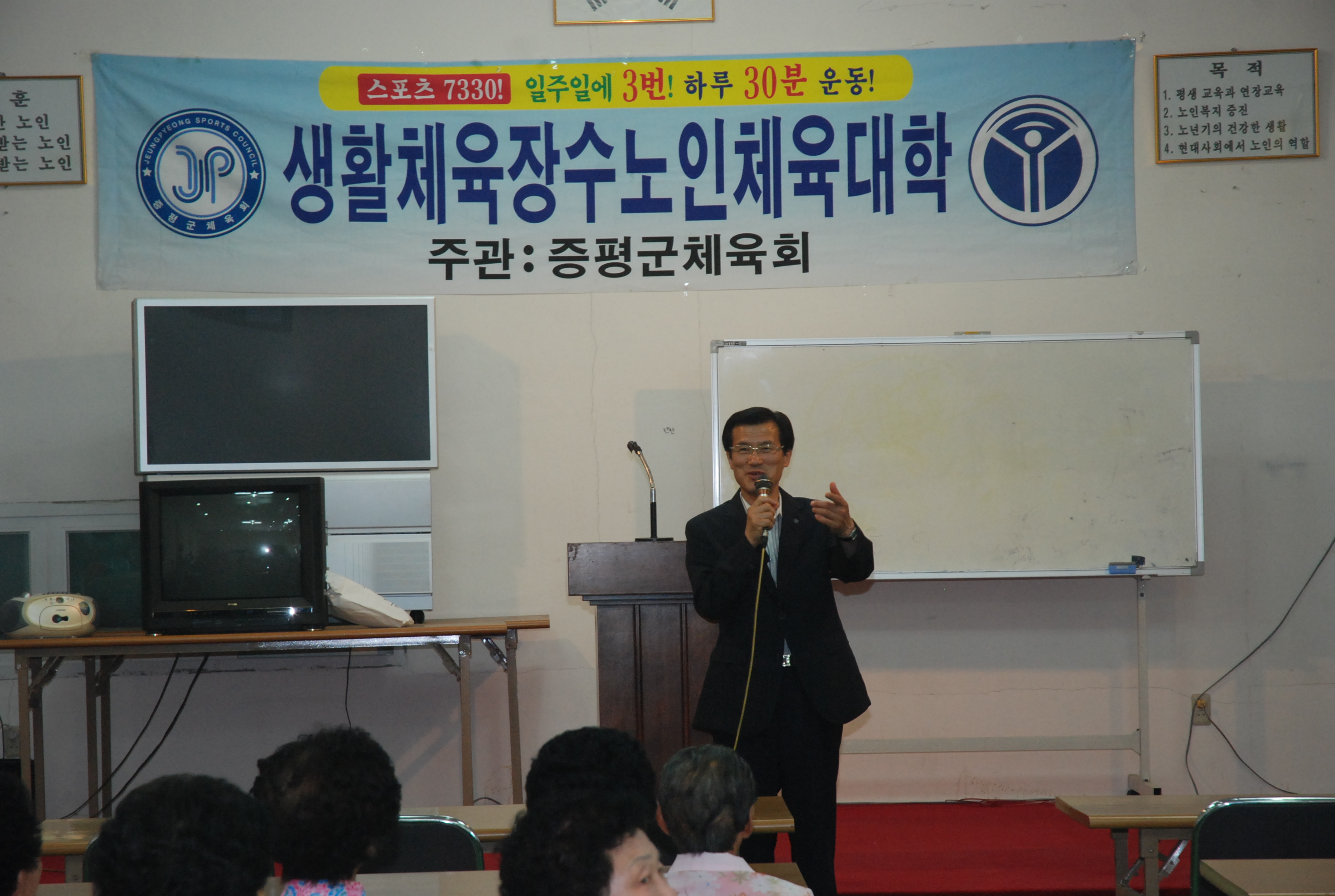 6.16(목) 도안제일교회에서 열린 장수체육대학 개강식에 참석, 인사말씀 및 학생 격려