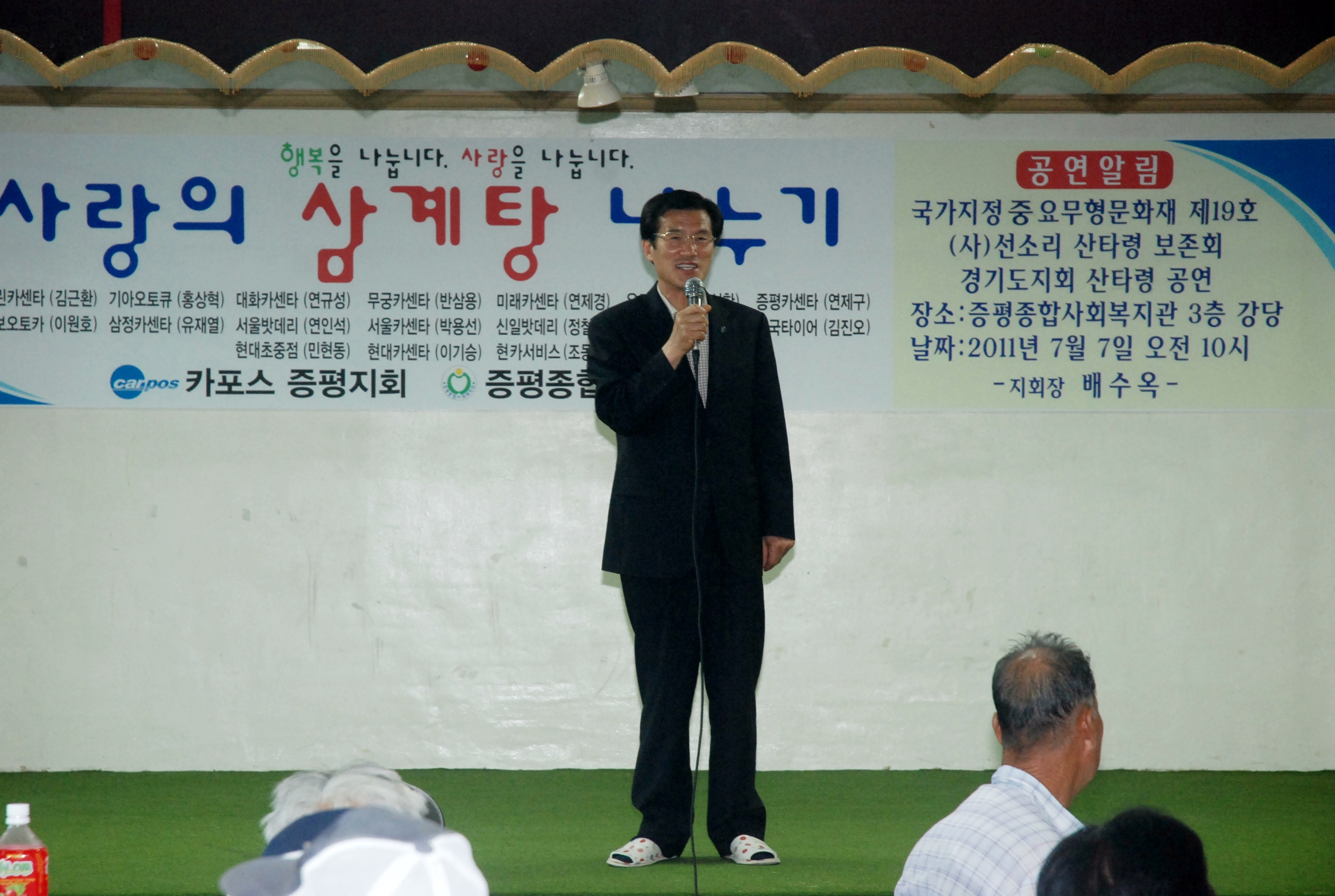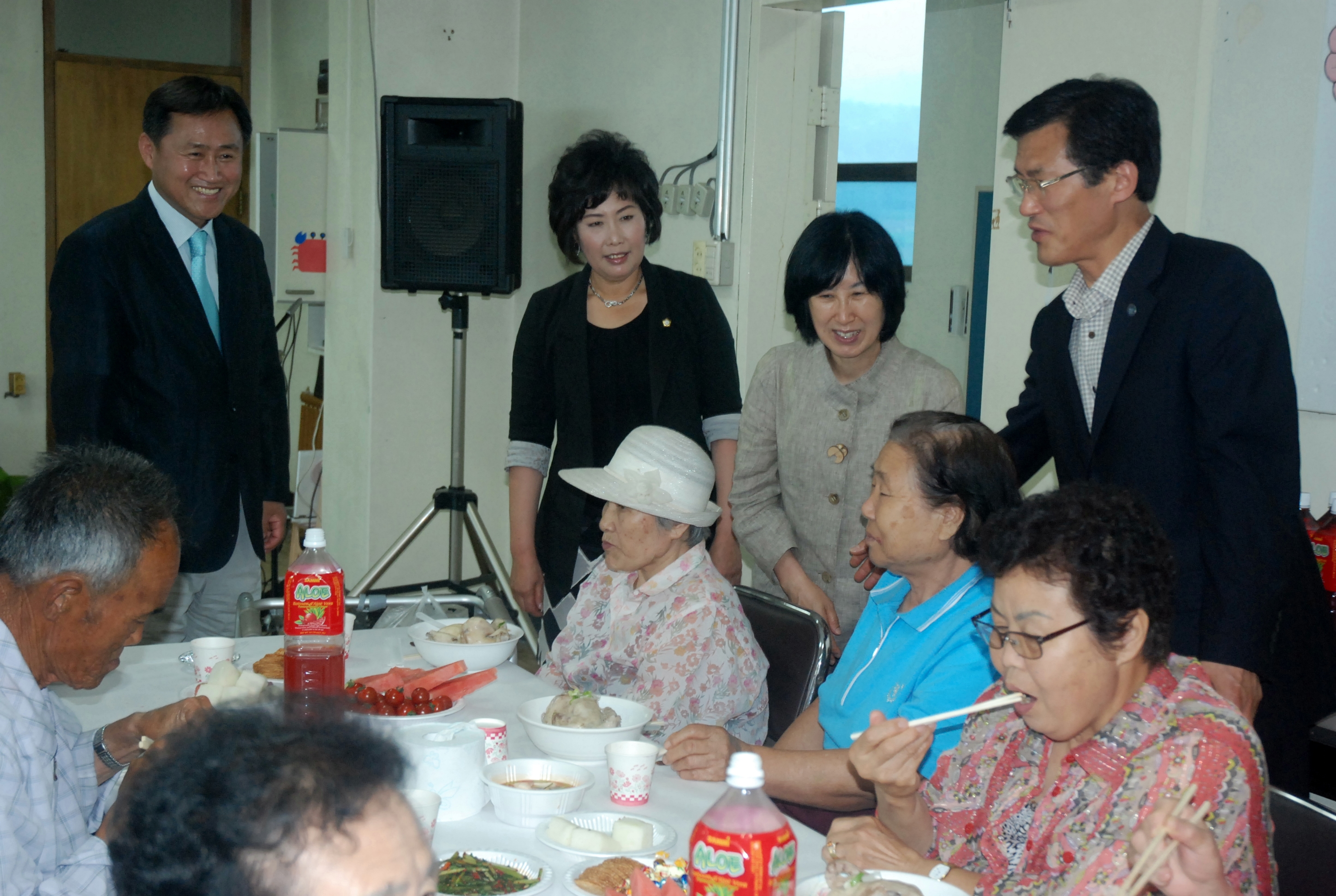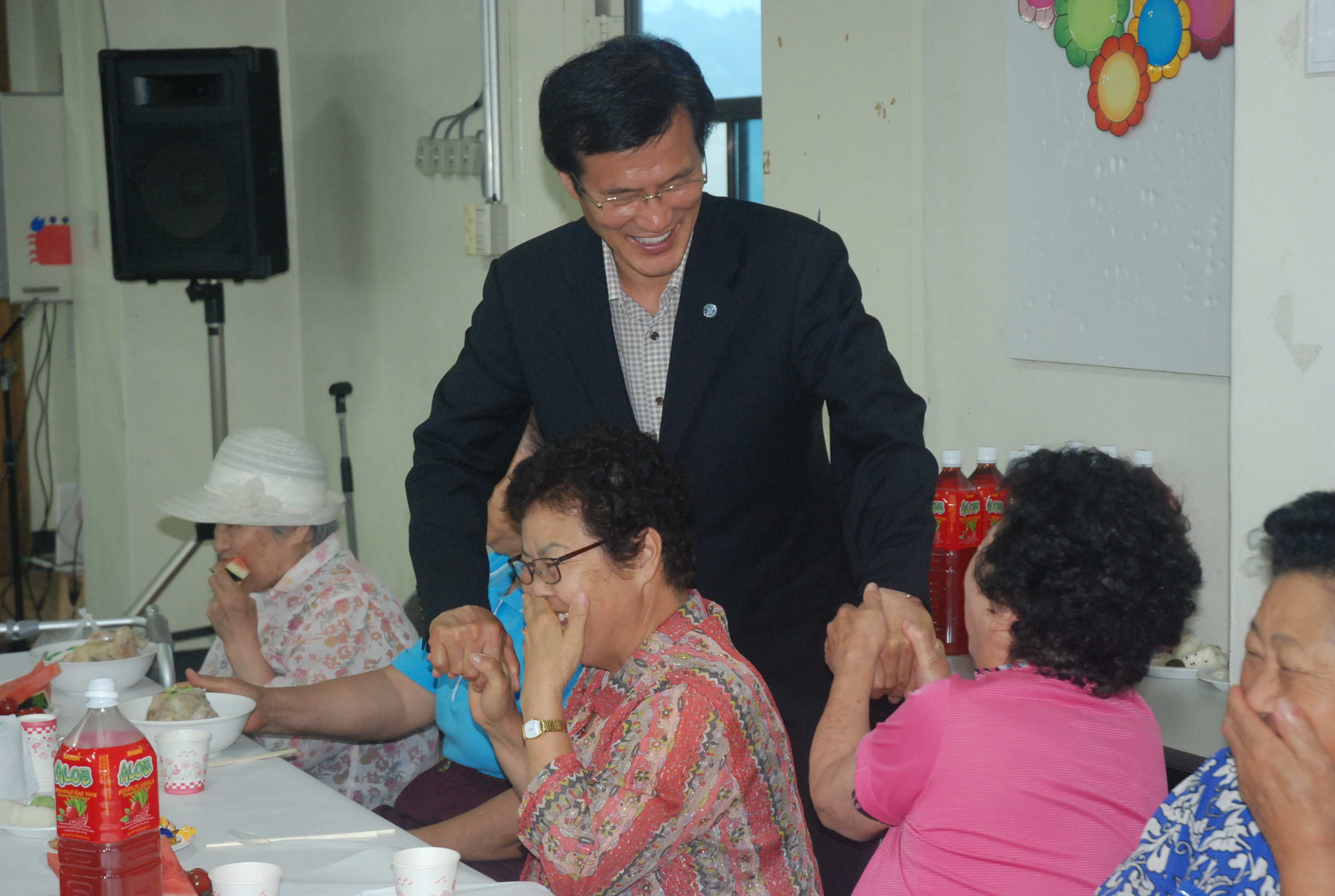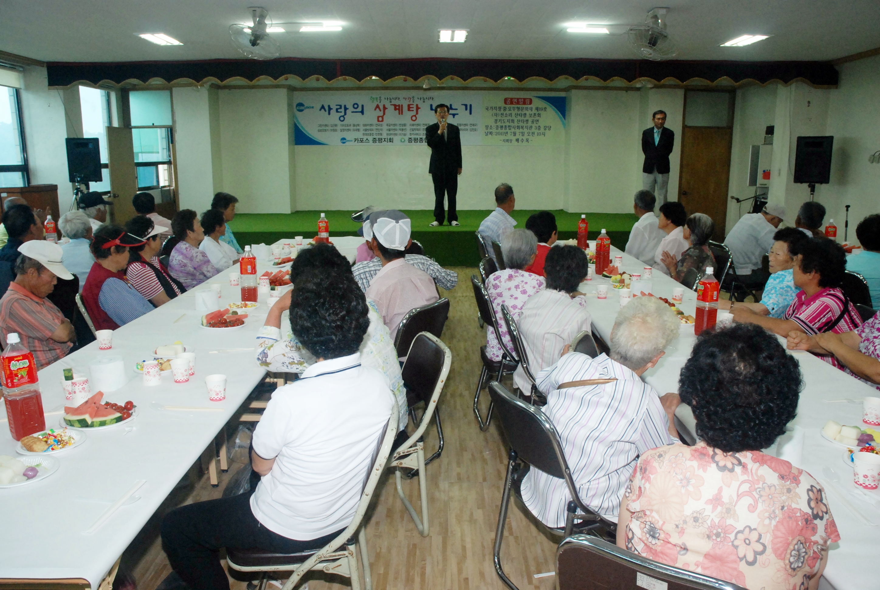 7월7일, 증평종합사회복지관 대강당에서 카포스 후원으로 열린 "사랑의 삼계탕 나누기"행사에 참석 인사말씀을 하시고 참석자 격려
