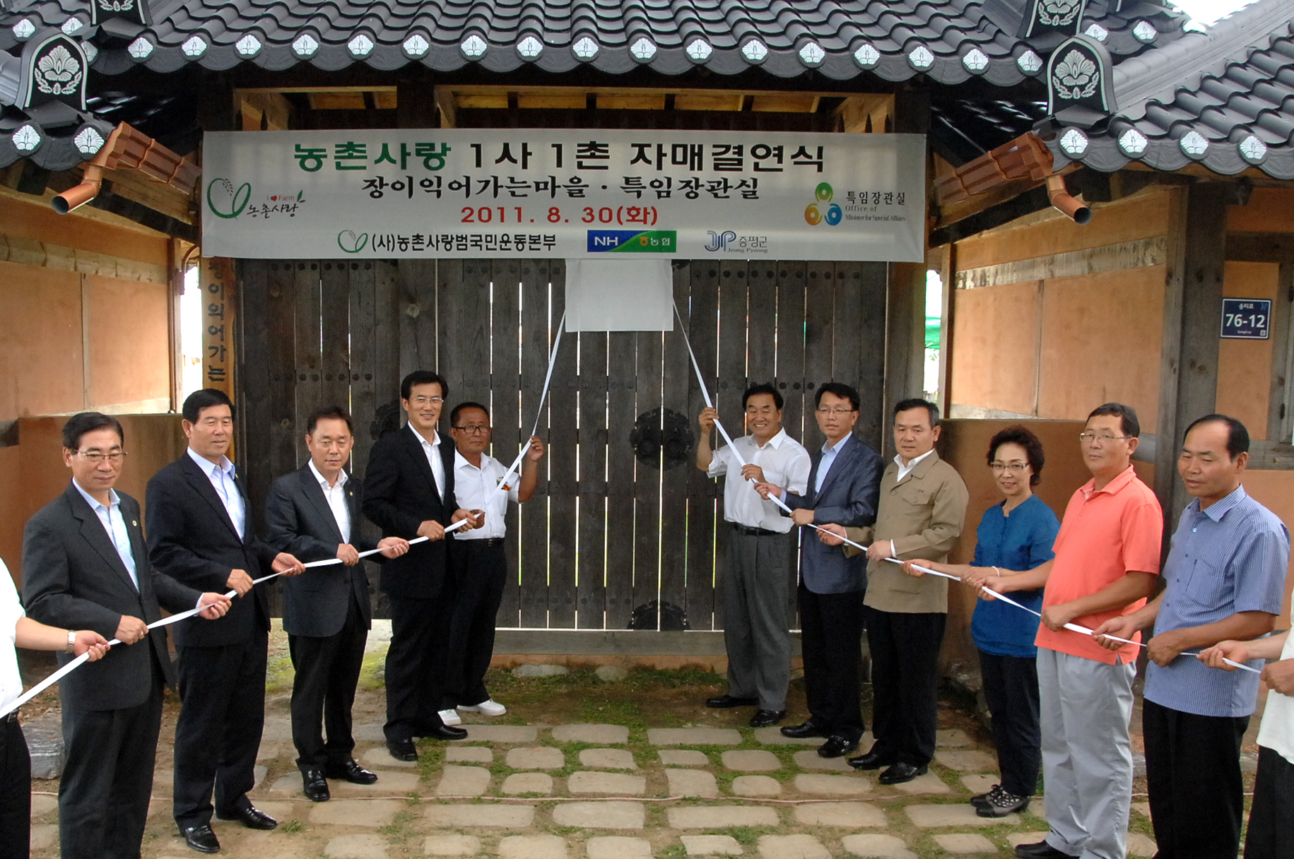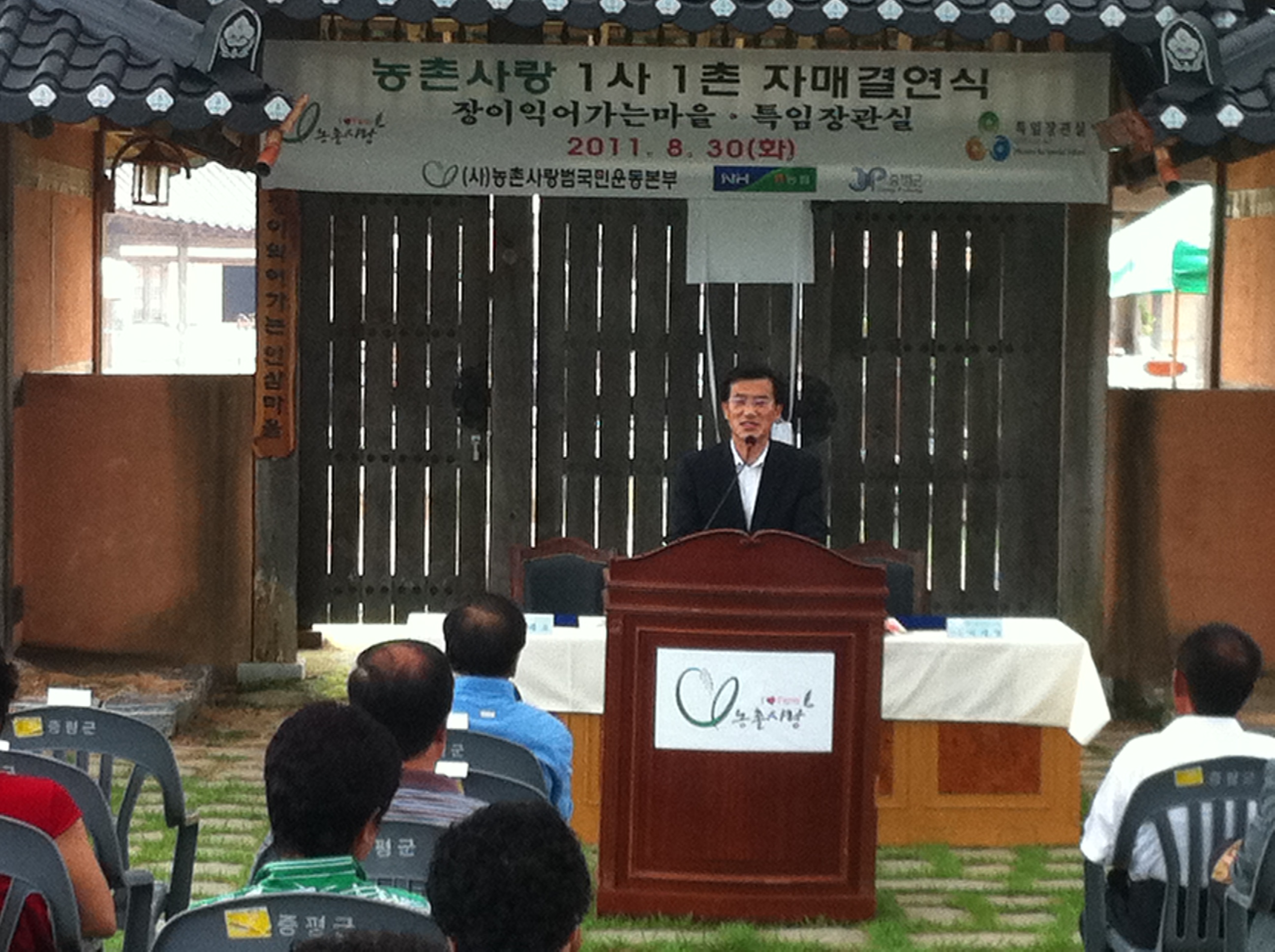 8월30일 송산리 장이익어가는마을과 특임장관실과의 1사1촌 자매결연식에 참석, 축사 및 관계자 격려