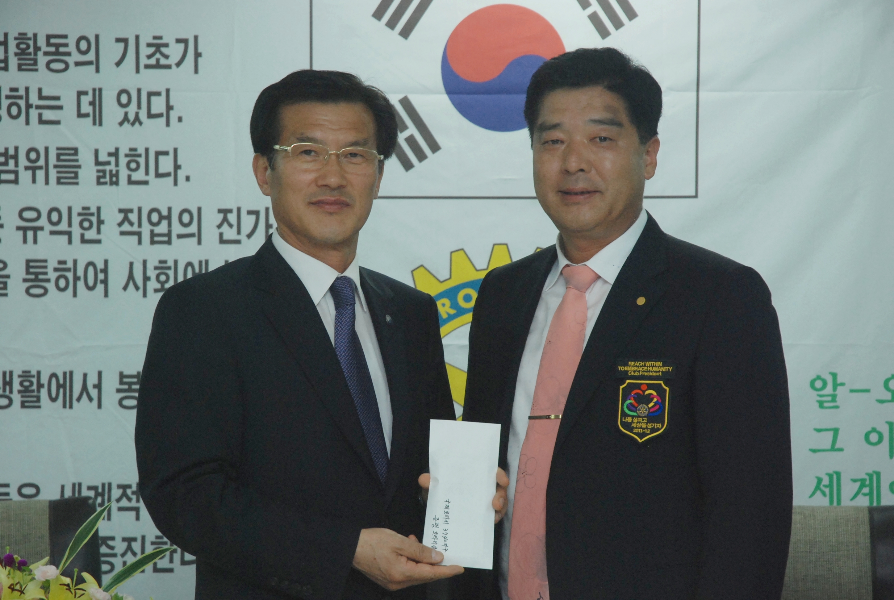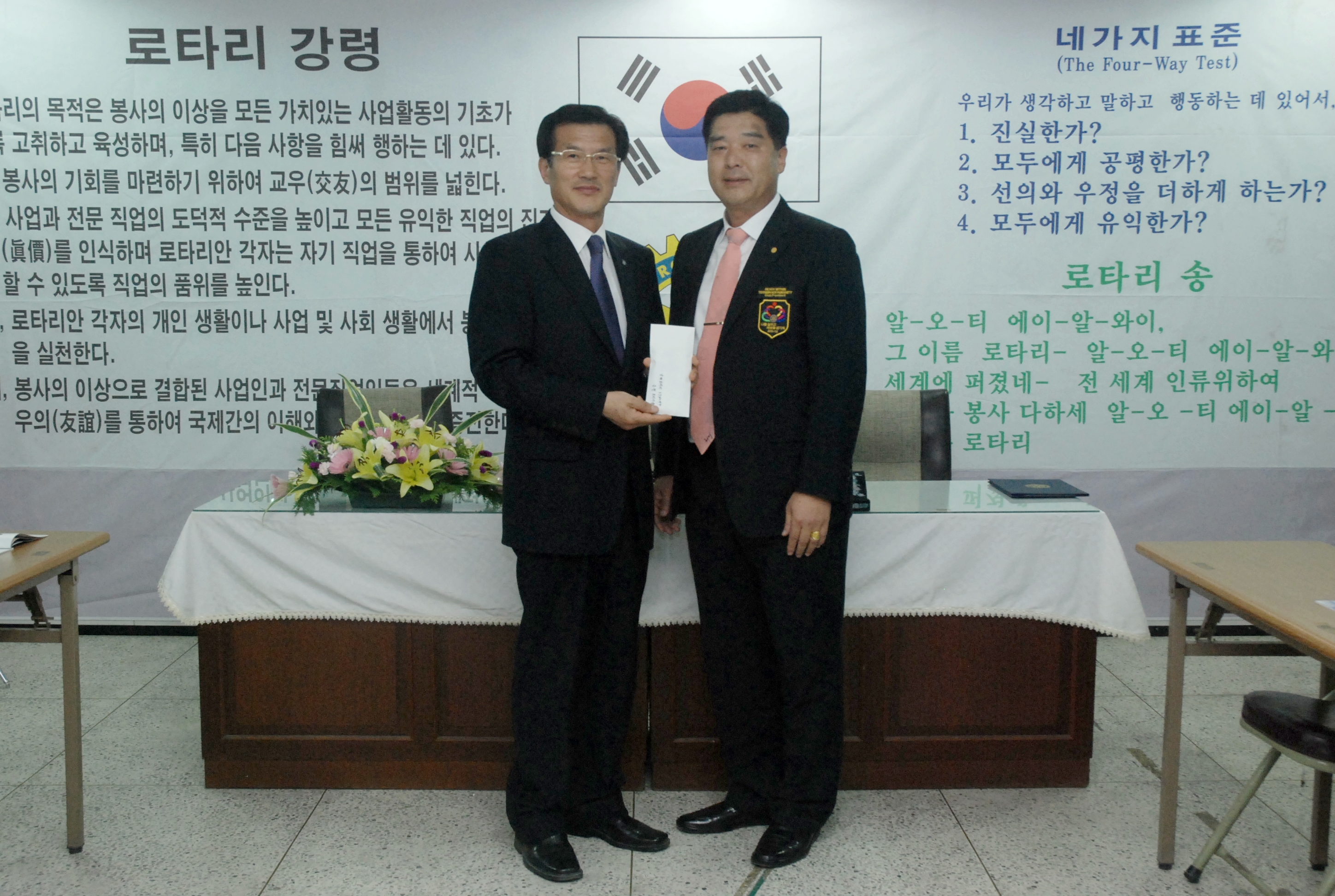 9월7일, 증평로타리클럽(회장 홍성표) 사무실 이전 개소식에 참석 클럽으로 부터 추석 맞이 불우이웃돕기 성금을 기탁 받고 회원 격려