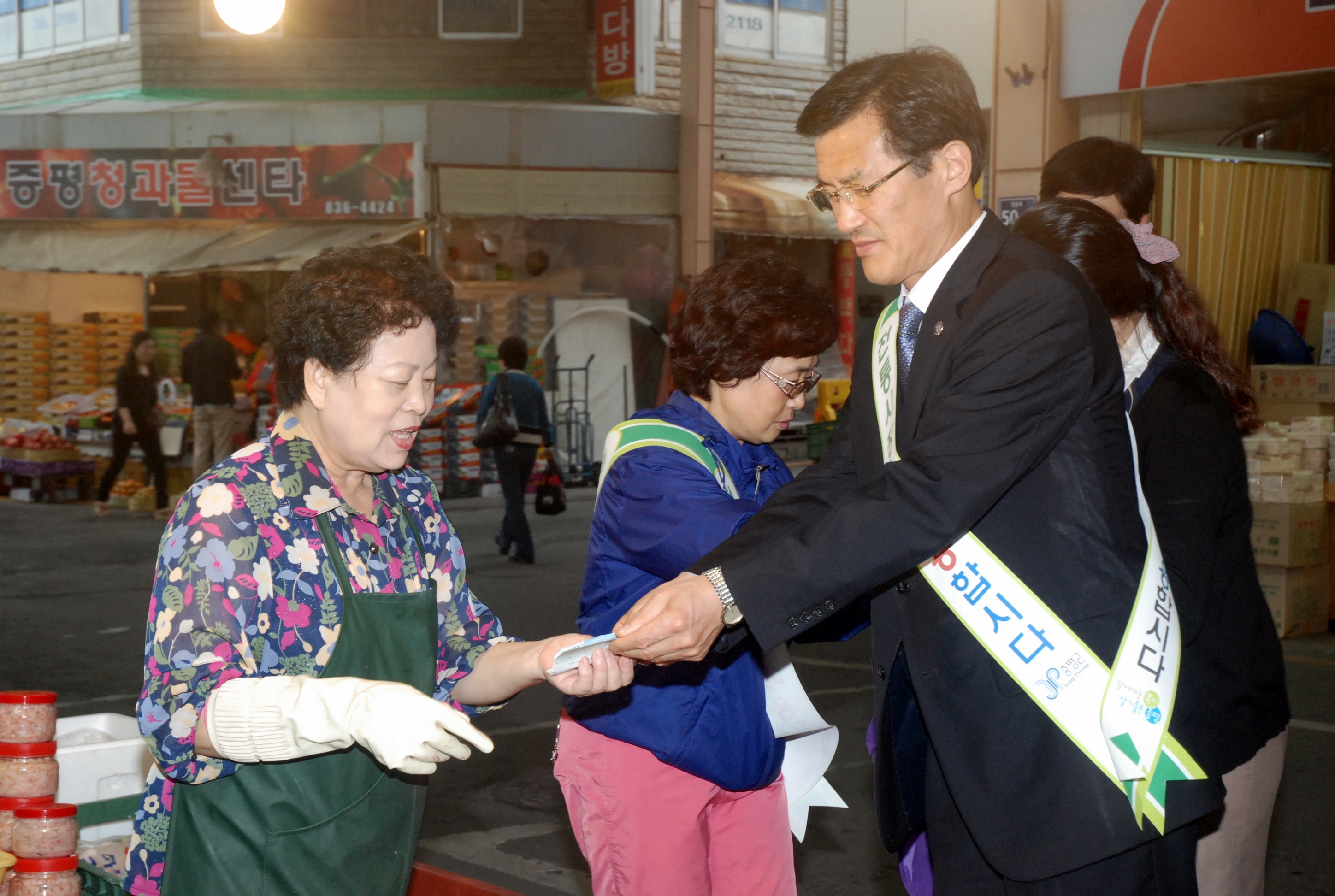 9월9일 추석을 앞두고 서민경제의 중심인 전통시장의 활성화를 위하여 증평장뜰시장에서 기관단체장과 공무원, 유관기관, 사회단체 회원 등 300여명이 참여하는 전통시장 장보기 및 물가안정, 에너지 절약 캠페인 전개