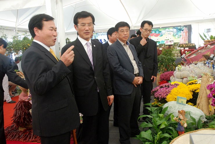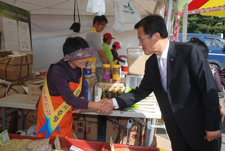 10월13일(목) 청주체육관 광장에서 열린 "2011 충북 농특산품 한마당 행사" 개회식에 참석, 증평 홍보부스 관람 및 참여 단체, 관계자 격려