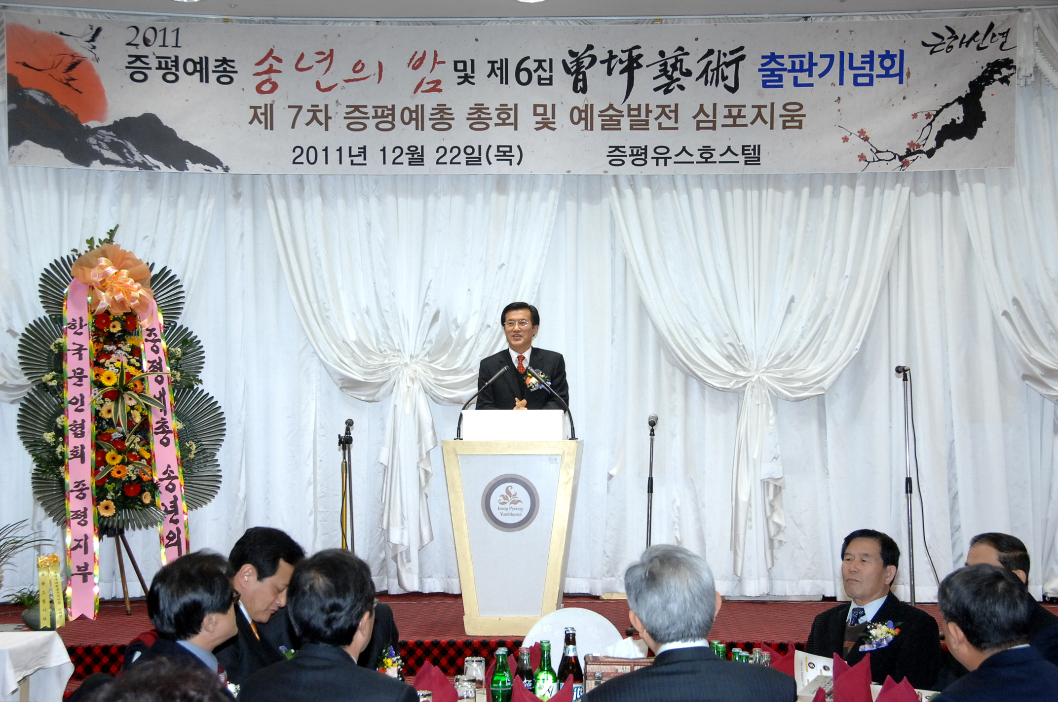 12월22일(목) 증평 유스호스텔에서 (사)한국예술문화단체총연합회증평지회 주관으로 열린 "제7차 증평예총 총회 및 예술발전 심포지엄"에 참석, 축사를 하시고 참석자 격려