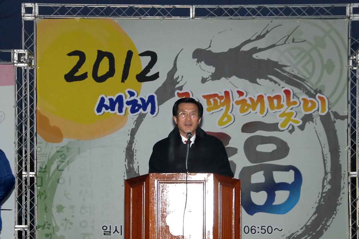 1월1일(일) 삼기천 둔치에서 열린 "2012년 새해 증평군 해맞이 행사"에 참석, 신년사를 하시고 참석 군민과 덕담을 나눔