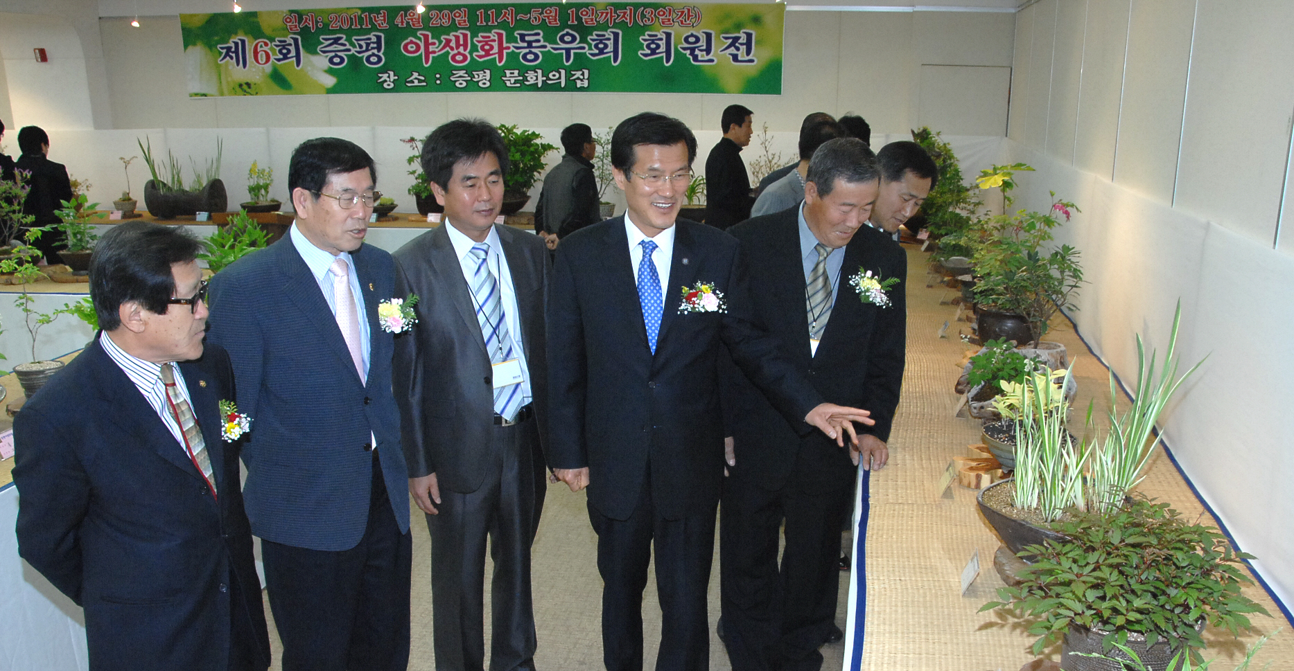 4,29(금) 문화의집 1층, 보강천갤러리에서 열린 "제6회 야생화동우회 회원전" 야생화 전시회 개장식에 참석, 인사말씀 및 관계자 격려