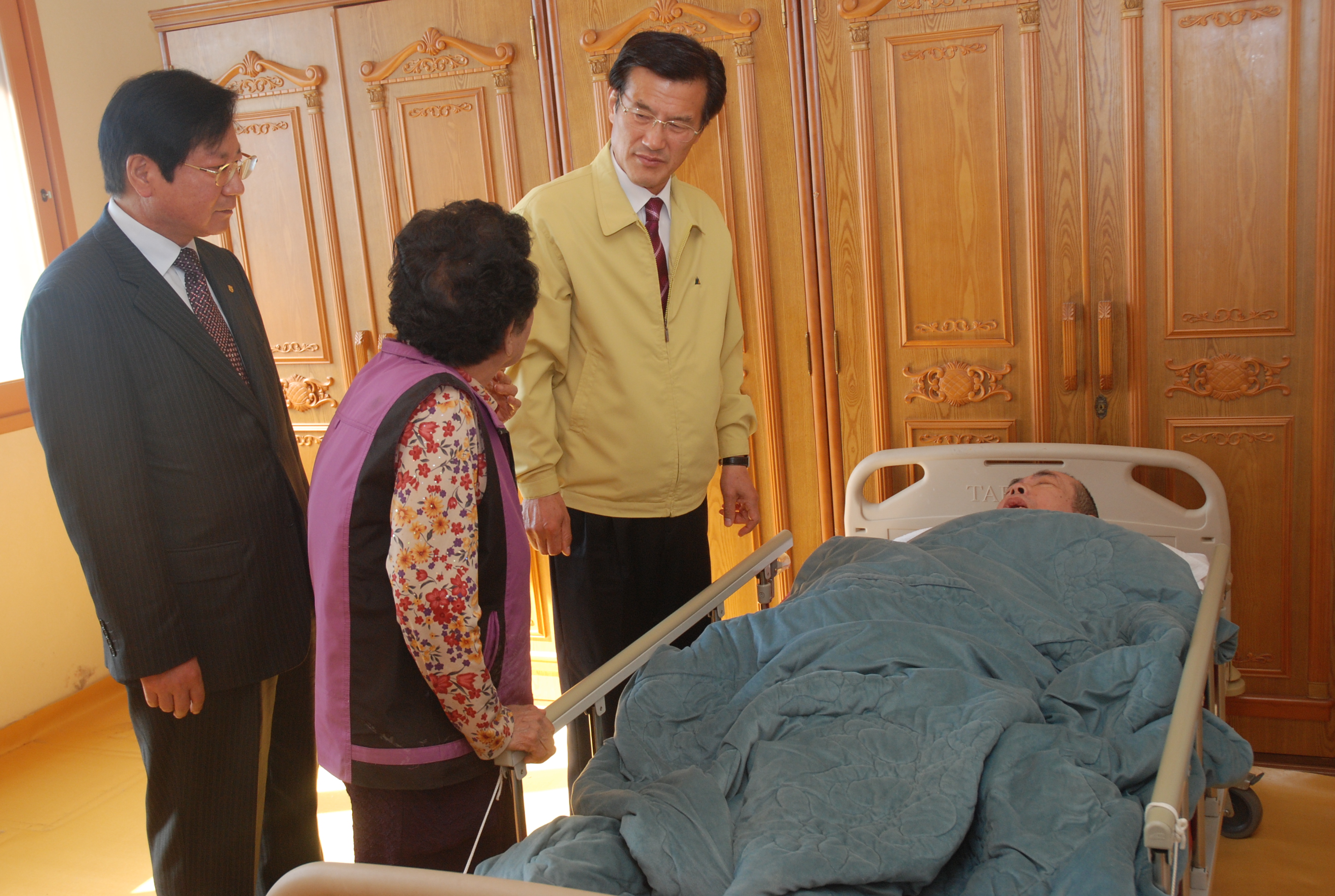 - 연탄리 연천흠씨 가정에서 NH개발 충북지사 주관으로 협력업체 임직원들과 함께 실시한 "독거노인,장애가구 사랑의 도배,장판교체 봉사활동" 현장에서 관계자 격려