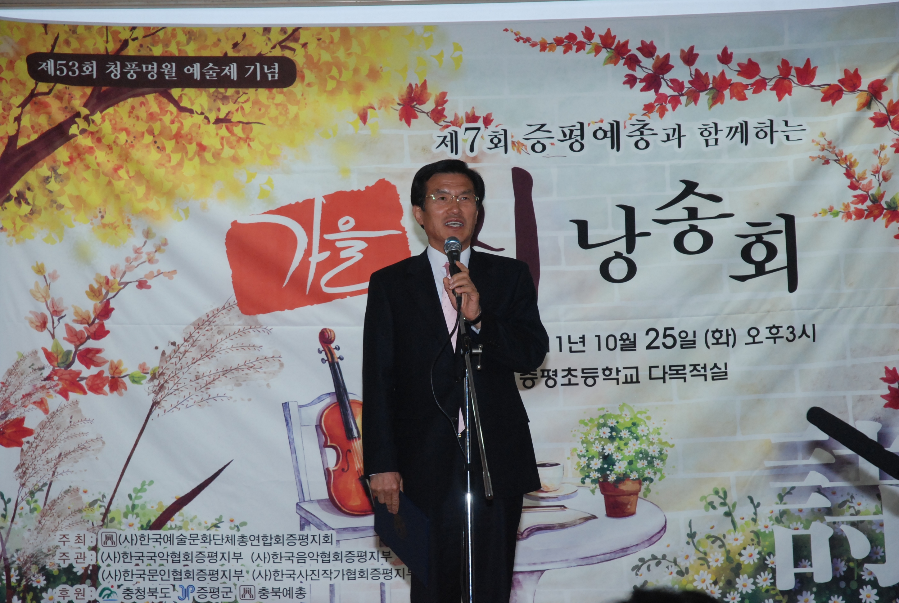 - 증평초등학교 다목적강당에서 한국예총충북연합회 증평지부 주관으로 열린 "제7회 가을 시낭송회"에 참석