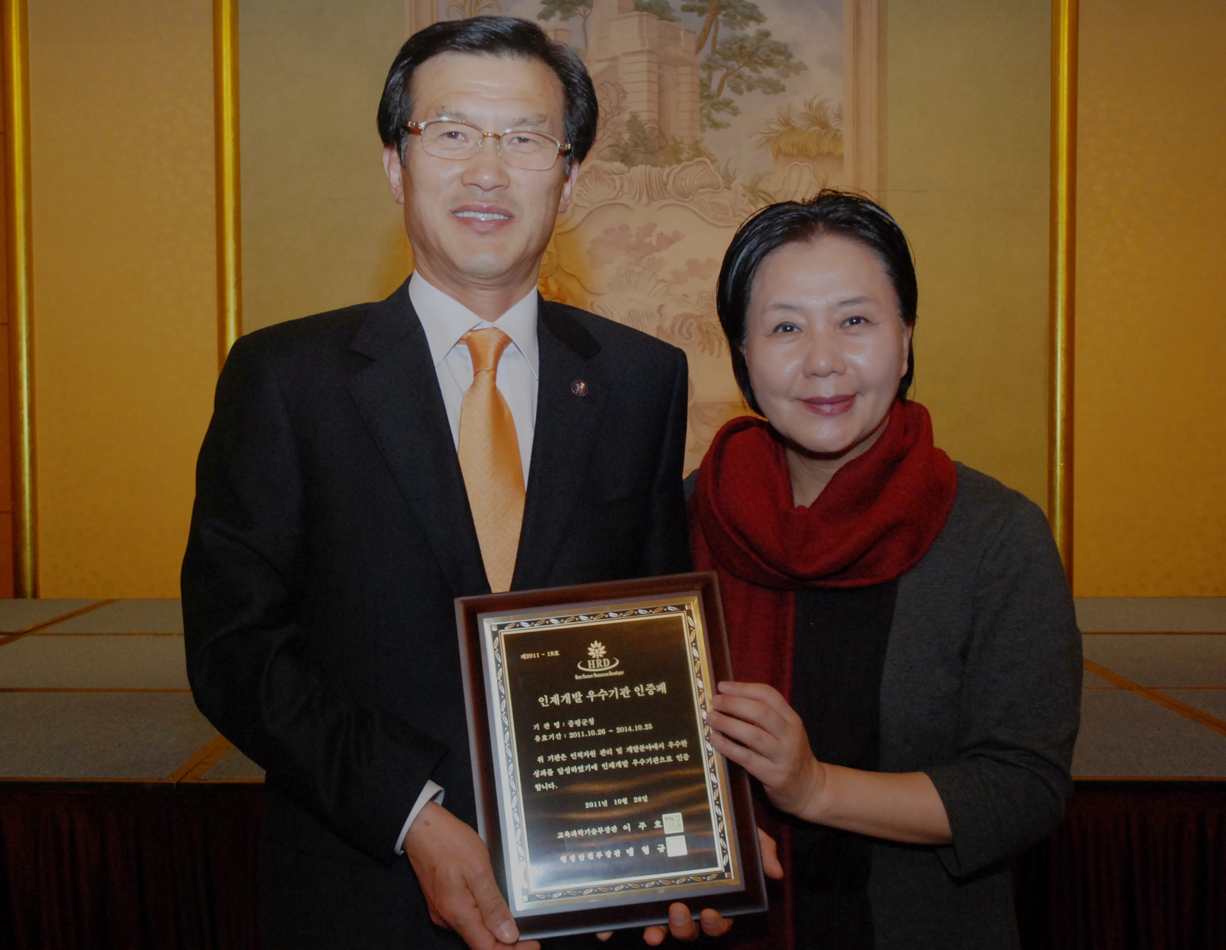 10월 26일(수) 서울 그랜드힐튼호텔에서 열린 "인적자원 개발 우수기관 인증 수여식"에 참석