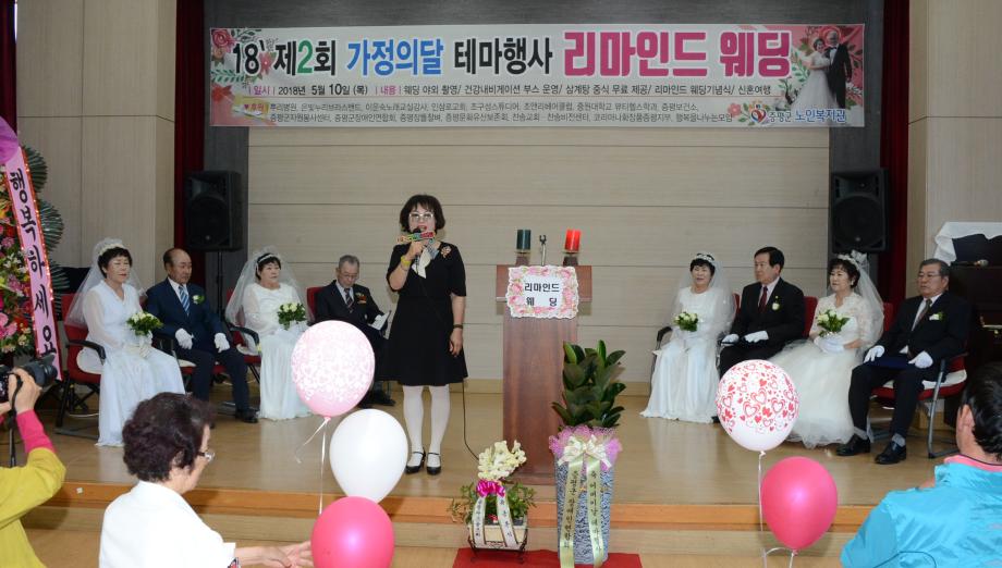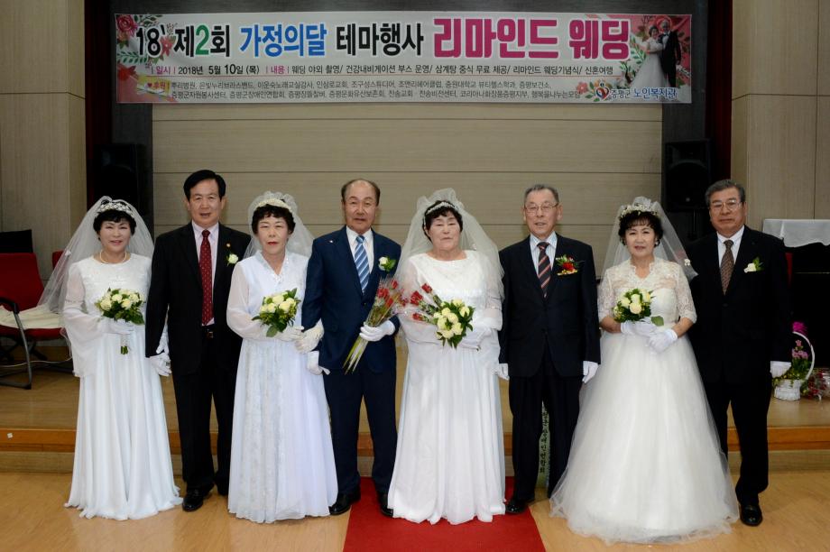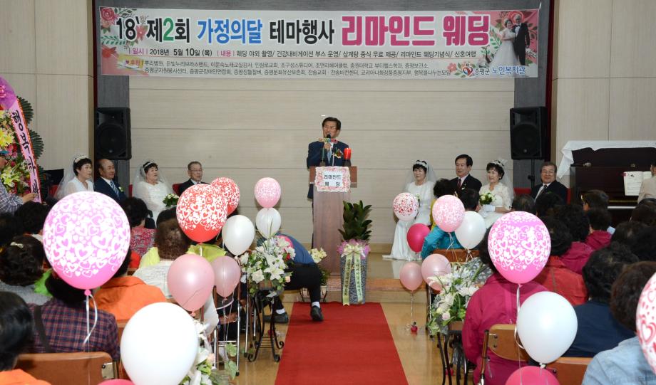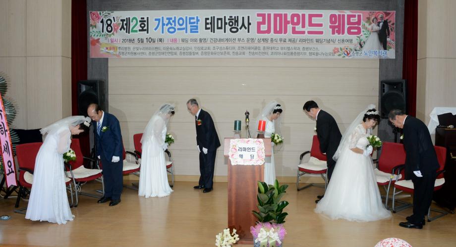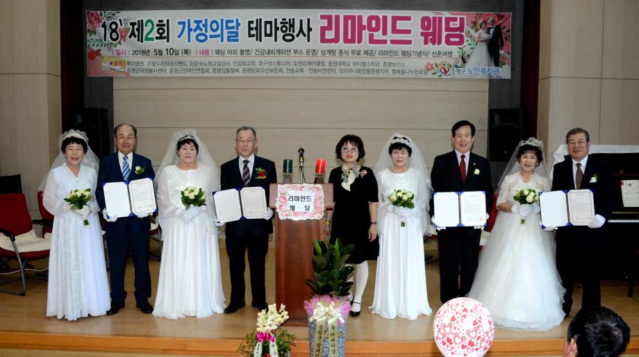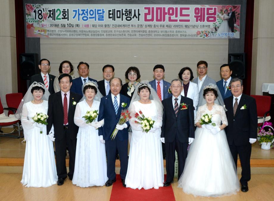 증평군노인복지관(관장 김용예)은 10일 증평읍 내성리 복지관에서 4쌍의 황혼부부를 모시고‘제2회 리마인드웨딩’을 개최했다.(보도자료실 참조)