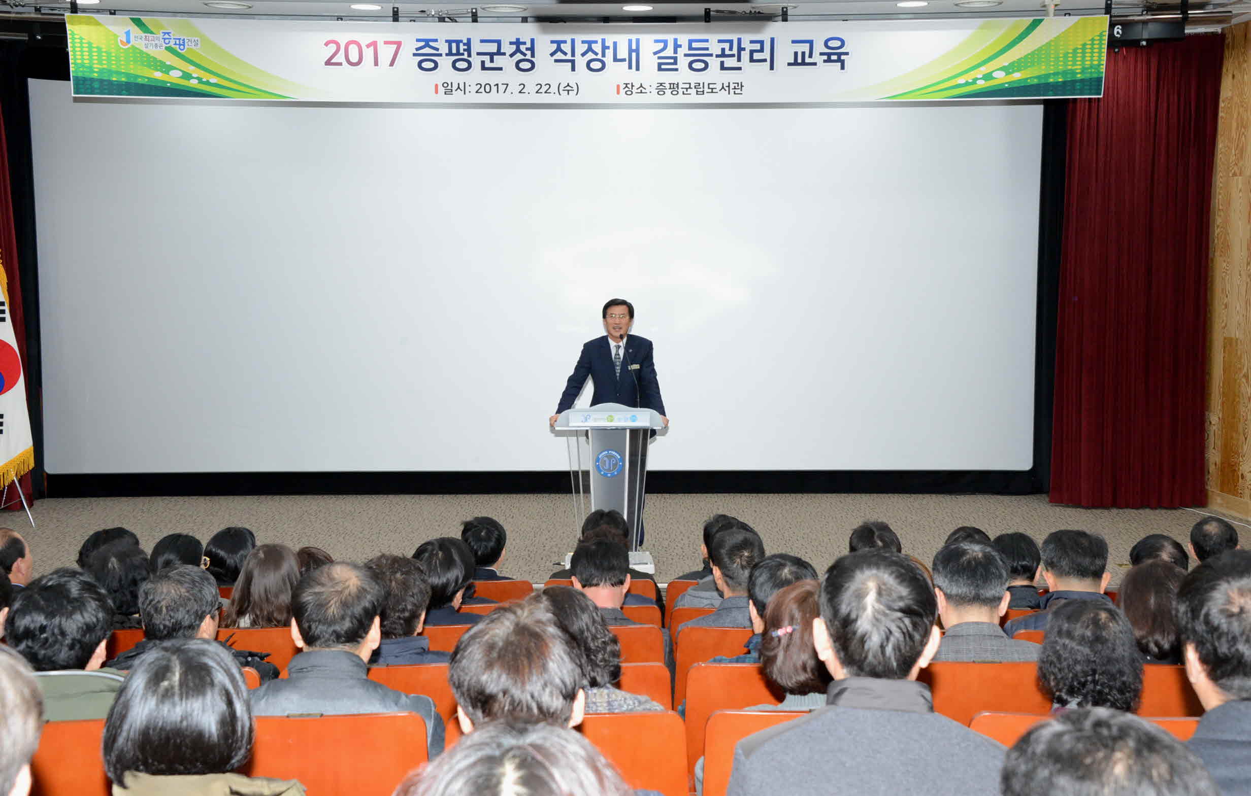 증평군은 22일 증평군립도서관 3층 다목적실에서 팀장급 이상 간부공무원 100여 명을 대상으로‘직장 내 갈등관리 교육’을 진행했다.(보도자료실 참조)