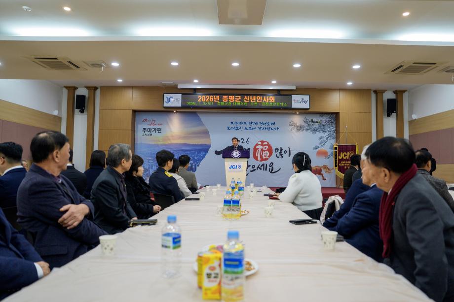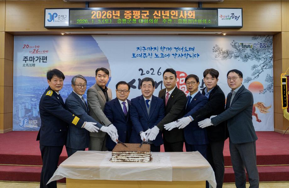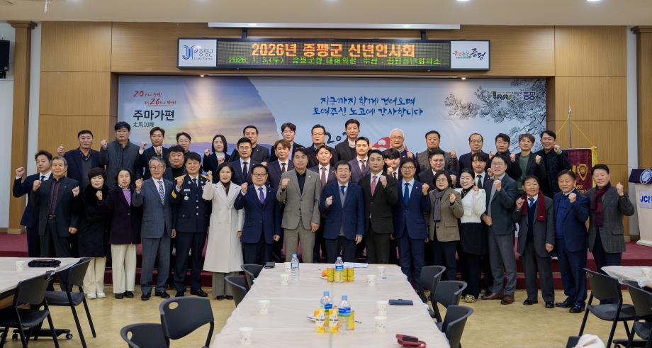 충북 증평군은 3일 군청 대회의실에서 ‘2026년 증평군 신년인사회’를 열고 지역 주요 기관·사회단체장들이 한자리에 모여 새해 인사를 나눴다고 밝혔다.