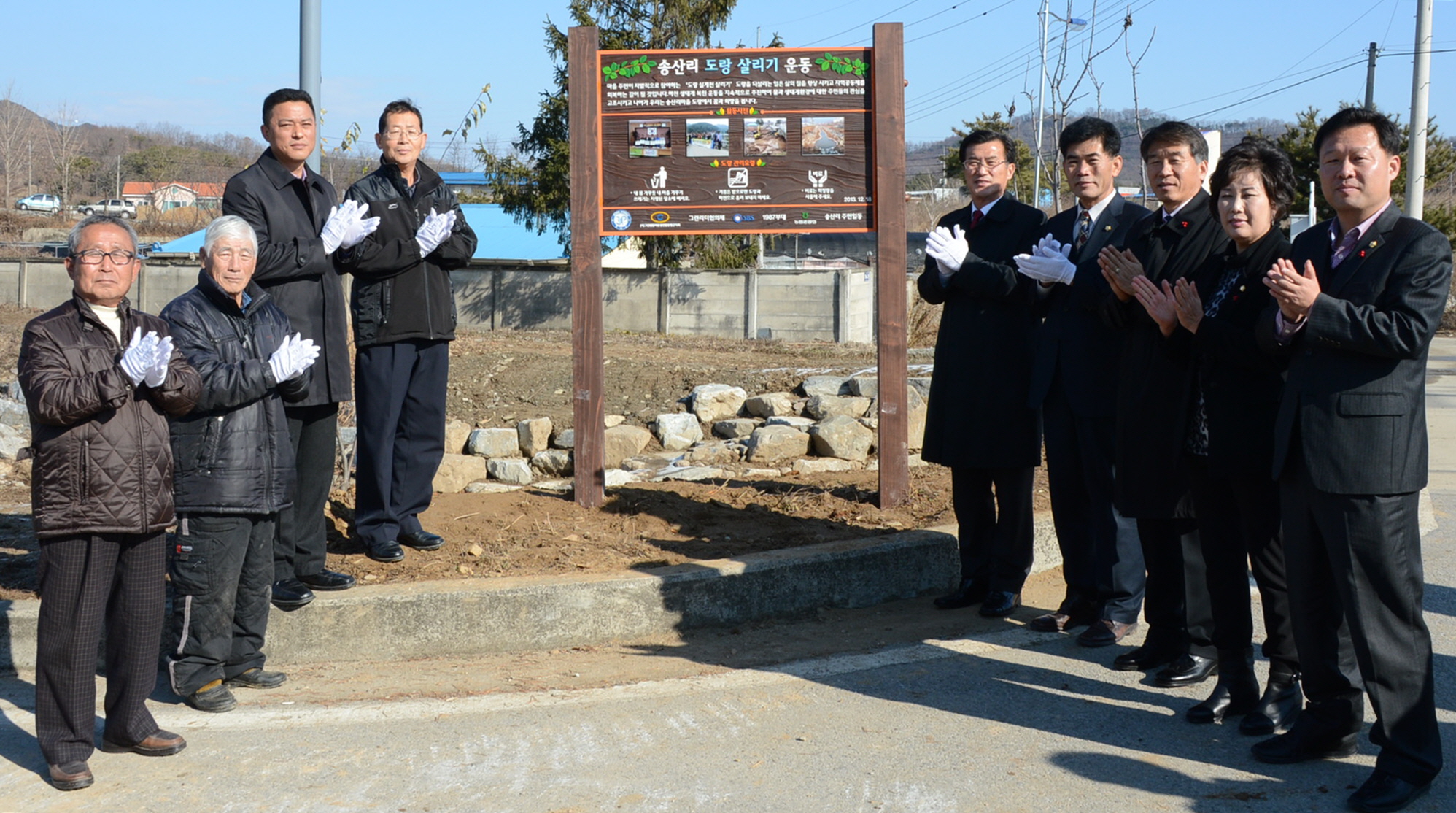 증평군은 18일 송산1리 송산천 일원에서 증평군에서 추진한 ‘2013년 도랑 살리기 사업’을 완료하고 현판식을 가졌다. [보도자료실 참조]