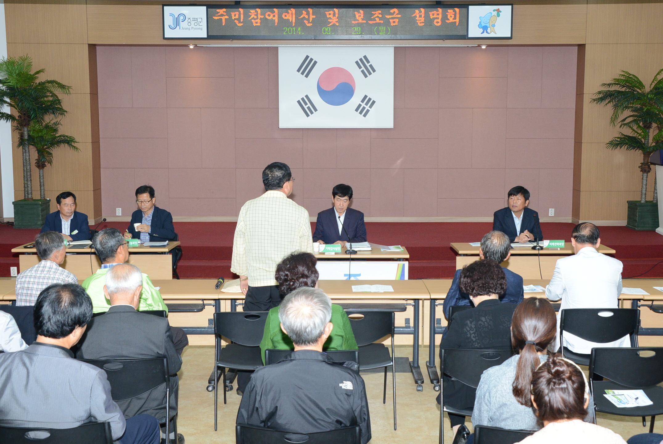 증평군은 29일 오후3시 군청 대회의실에서 주민 100여명 참석한 가운데 2015년도 예산 편성을 위한 주민참여예산과 달라지는 지방보조금제도에 대한 주민 설명회를 개최했다. [보도자료실 참조]