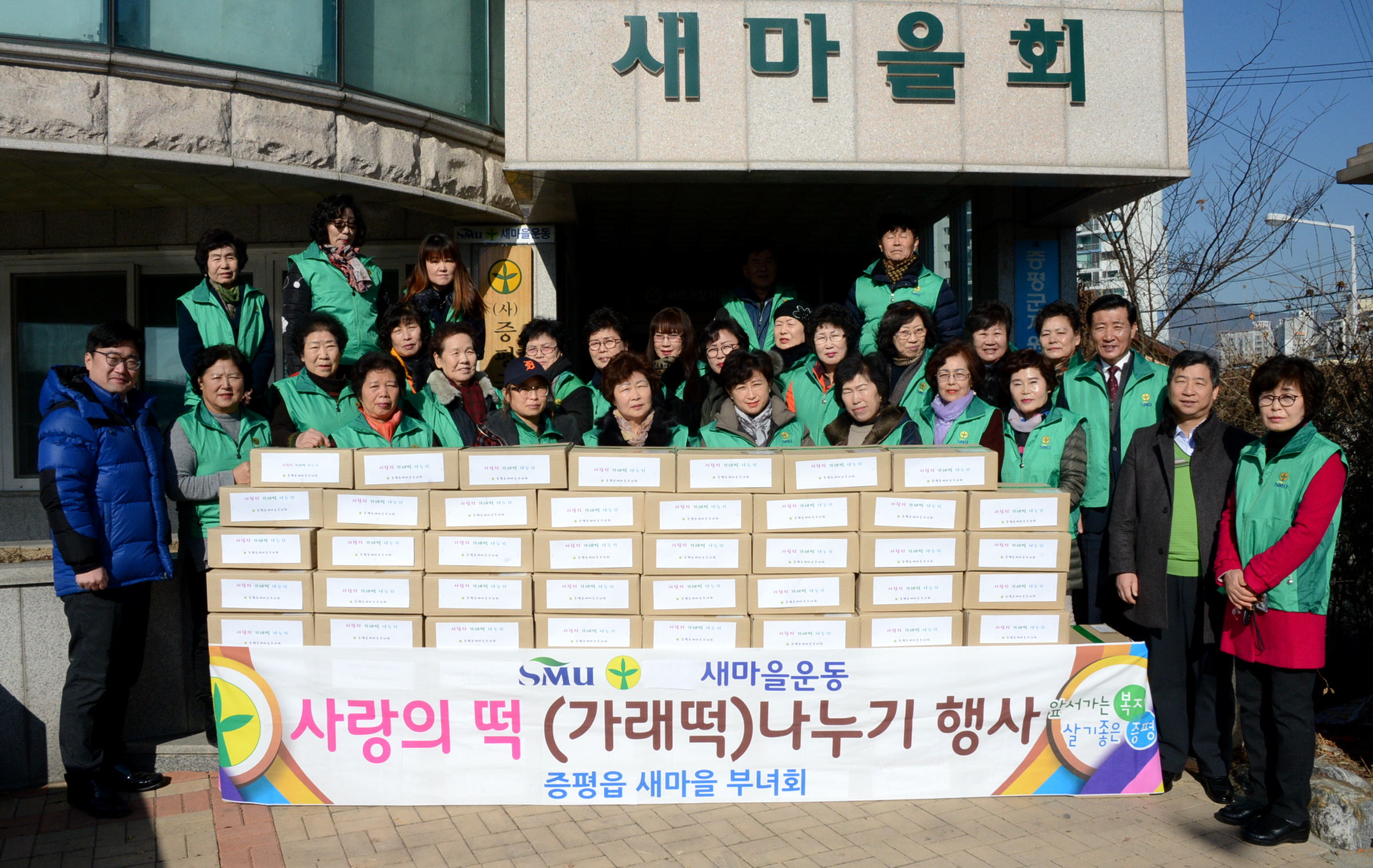 증평읍새마을부녀회(회장 유순례)는 1일 증평군새마을회관 앞에서 구정을 맞아 ‘사랑의 가래떡’ 나누기 행사를 가졌다.(보도자료실 참조)