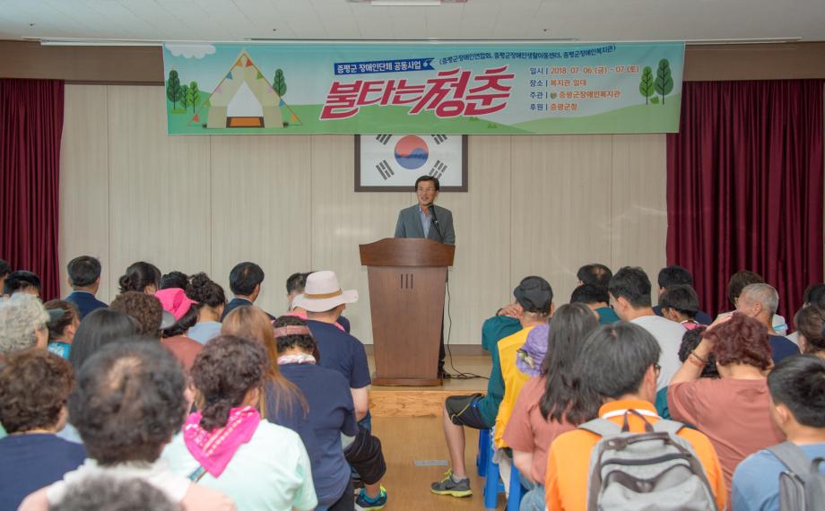 증평군장애인복지관(관장 정찬연)은 6일, 7일 1박 2일간 증평읍 내성리 증평군장애인복지관 일원에서 장애인과 함께하는 여름캠프‘불타는 청춘’을 개최했다.