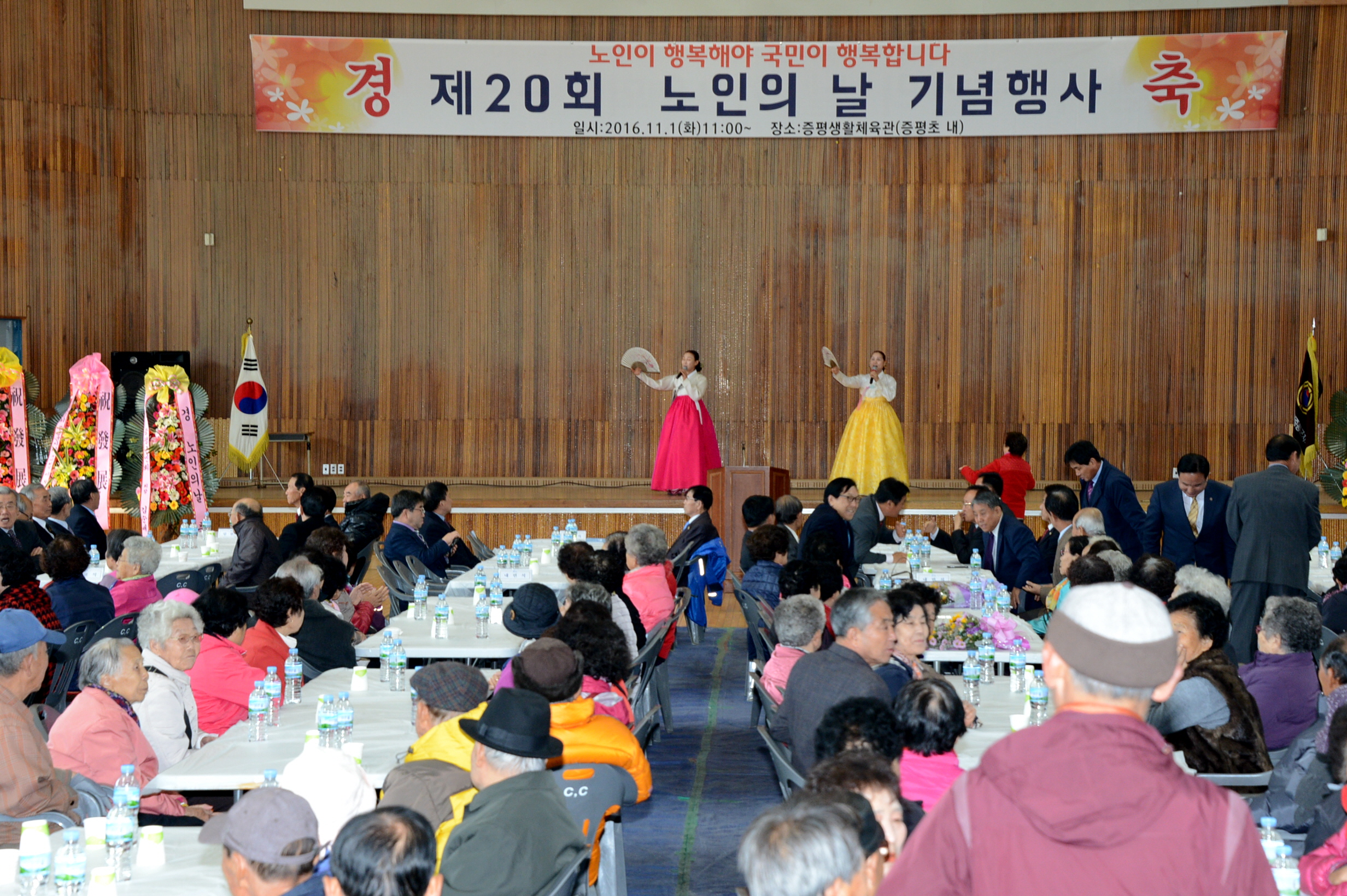 (사)대한노인회증평군지회(회장 김재성)가 주관하는 제20회 노인의날 기념행사가 1일 오전 10시 30분 증평체육관에서 각급 기관단체장, 어르신 및 가족 등 1,000여명이 참여한 가운데 열렸다.(보도자료실 참조)