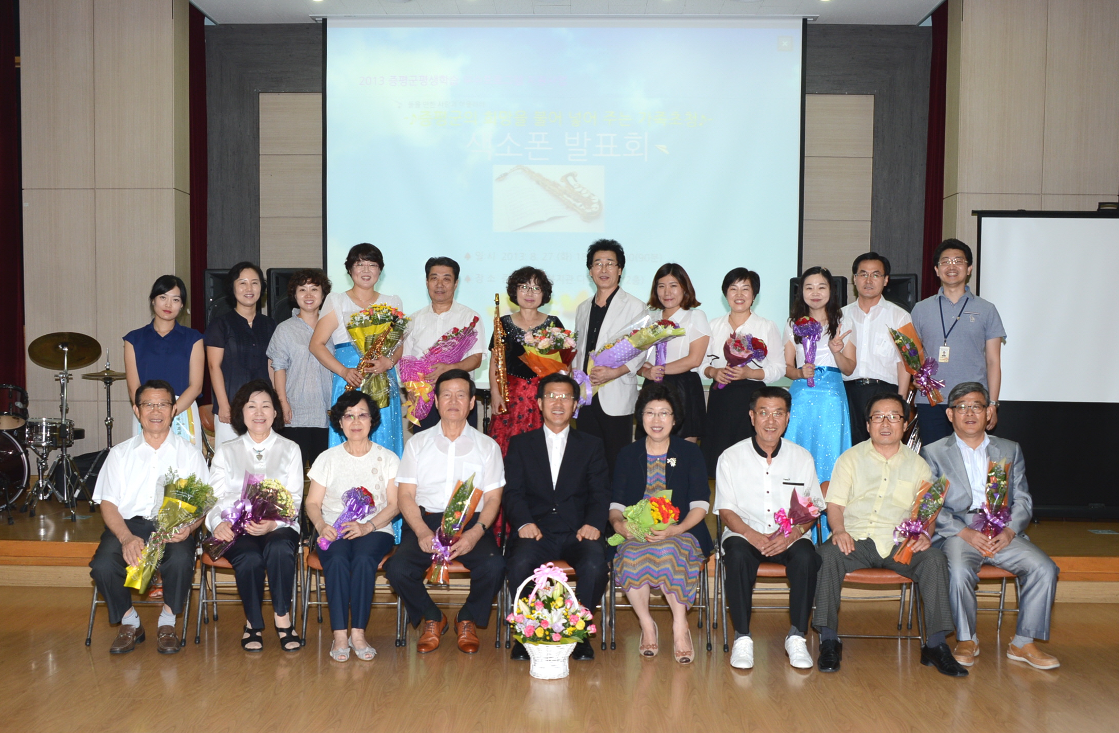 증평군의 2013년도 평생학습 우수 프로그램에 선정된(재)증평복지재단의 색소폰 교육 수료생 발표회가 오는 27일 오후 6시 30분 증평군 노인복지관 대강당에서 열렸다. [8월23일 보도자료 참조]