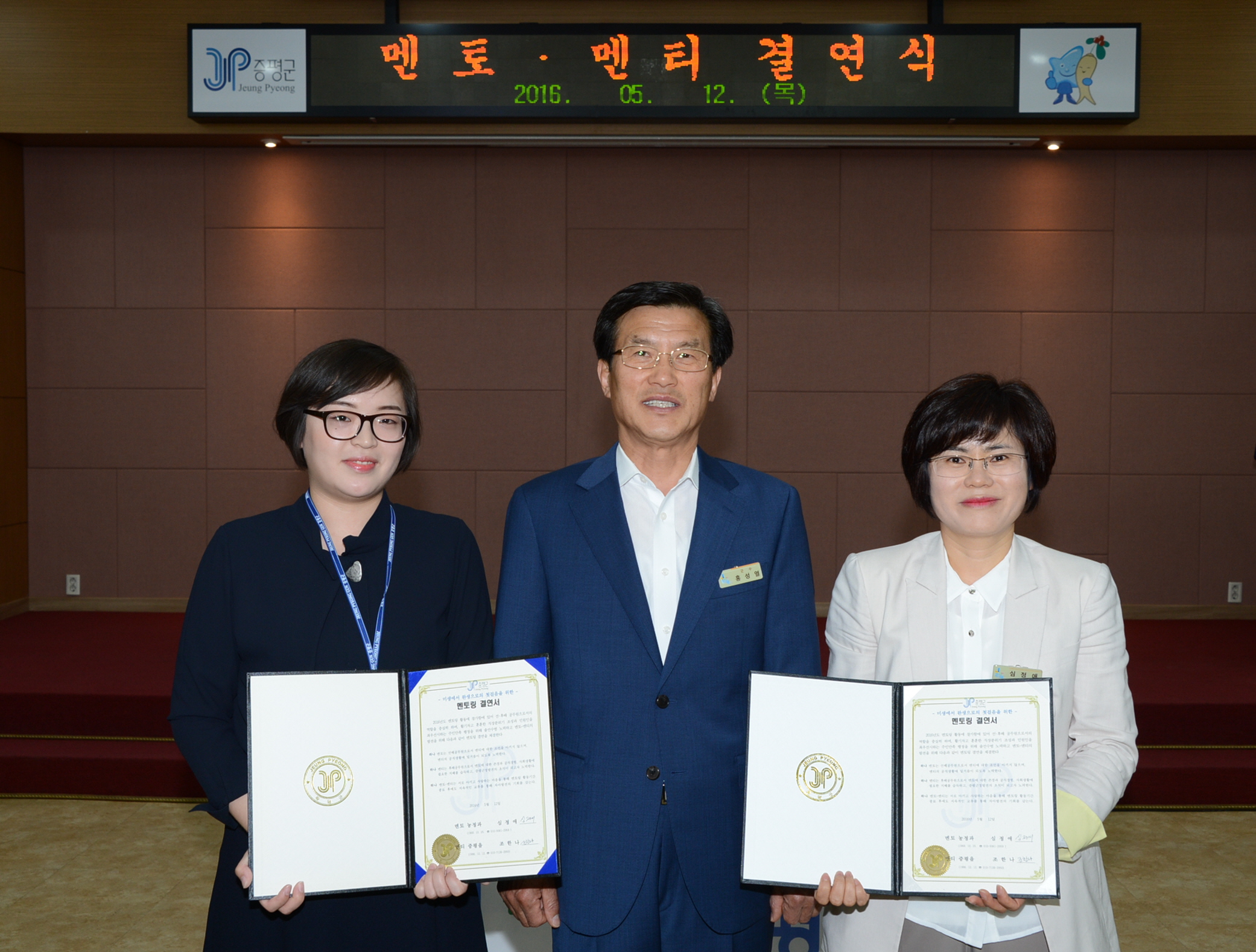 증평군은 12일 군청 대회의실에서 선배공무원 22명과 새내기공무원 22명이 참여한 가운데 멘토-멘티 결연식을 갖고, 조직문화를 공유하고 공직생활의 애로사항을 조언하는 멘토링제를 운영키로 했다.[보도자료실 참조]
