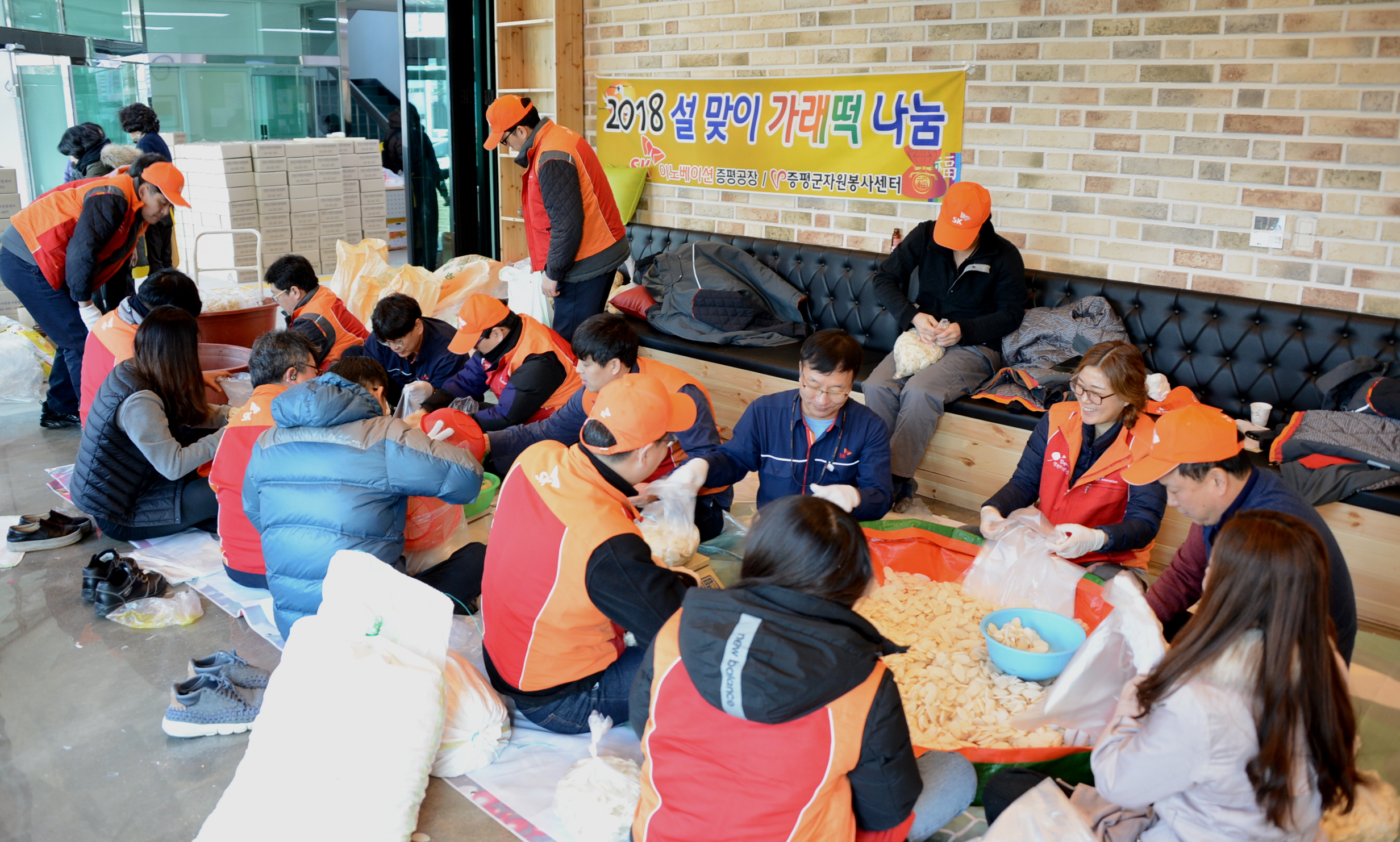 증평군 자원봉사종합센터(센터장 김남순)는 29일 증평군 여성회관에서 지역사회 소외계층을 위한‘설맞이 사랑의 떡 나눔 행사’를 열었다.(보도자료실 참조)