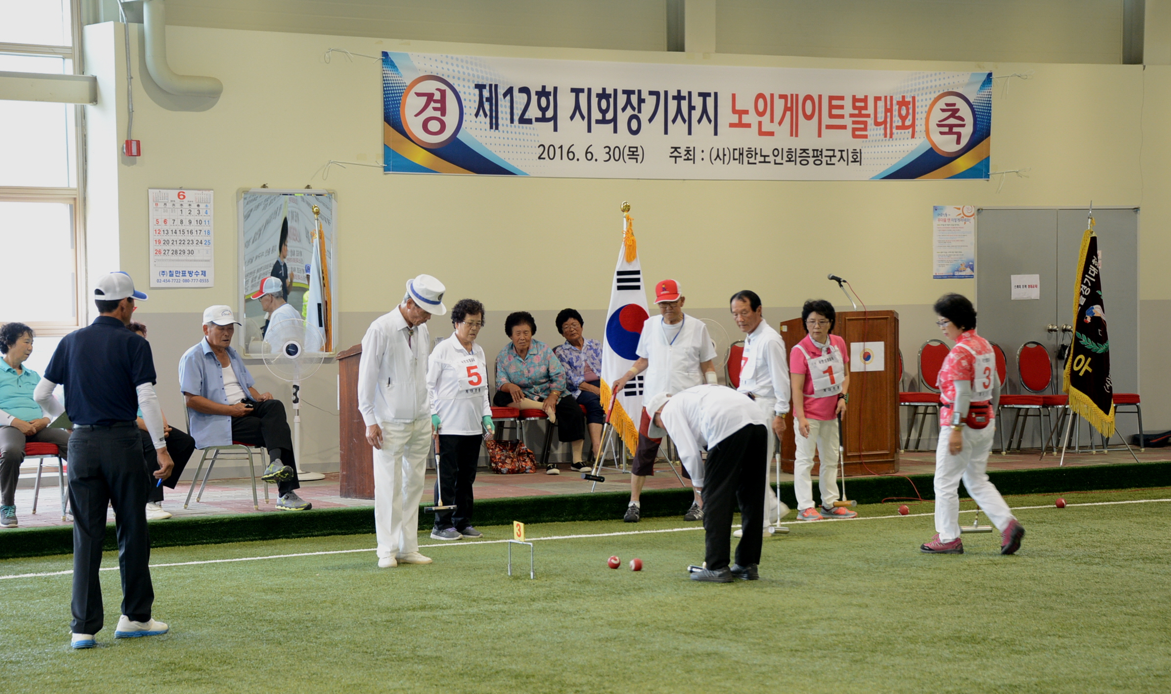 30일 증평읍 송산리 전천후 게이트볼장에서는 홍성열군수, 우종한 군의장, 게이트볼 이상용 연합회장이 참석한 가운데 어르신들의 여가활동 및 친선을 위한 제12회 (사)대한노인회증평군지회장기 게이트볼 대회가 열렸다.[보도자료실 참조]