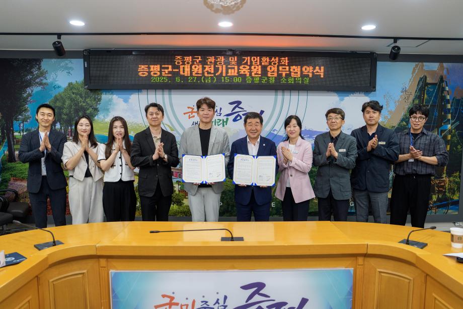 충북 증평군과 ㈜대원전기교육원(원장 권신원)이 지역 관광 활성화와 기업 활동 지원을 위한 손을 맞잡았다.