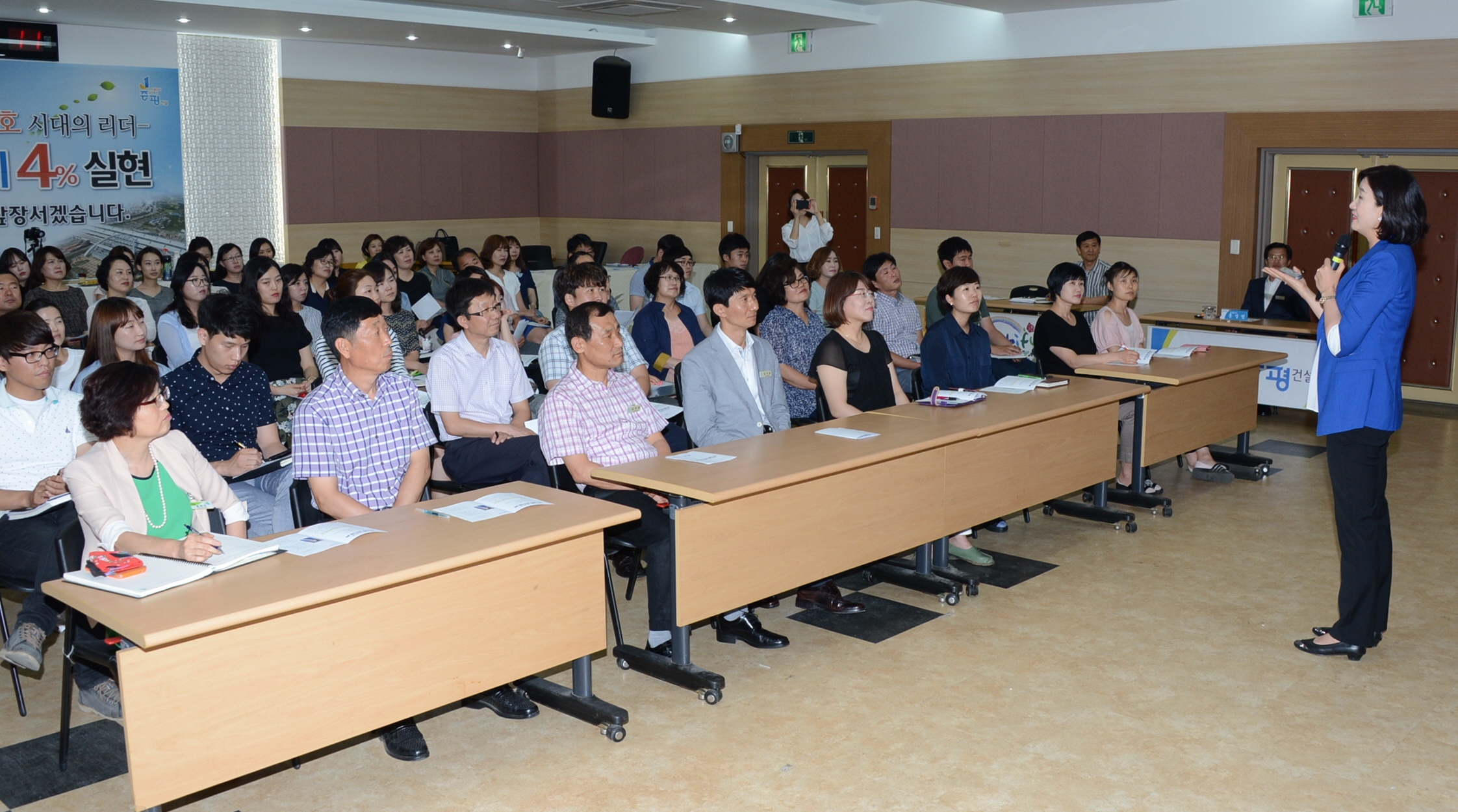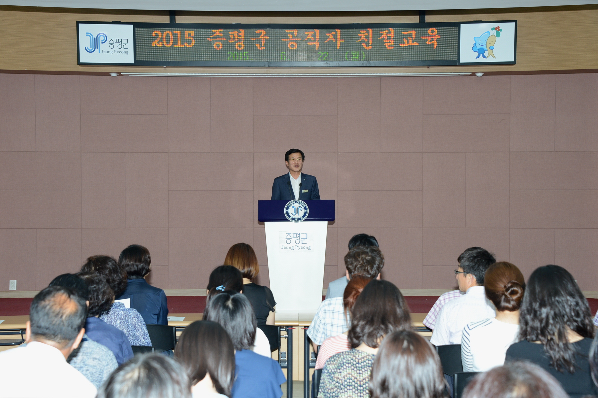 증평군은 22일 오후 3시 군청 대회의실에서 공무원 150여명이 참석한 가운데 희망교육개발원 김경희 원장을 초빙해 매력 있는 사람의 소통스킬에 대한 친절교육을 실시했다.(보도자료실 참조)