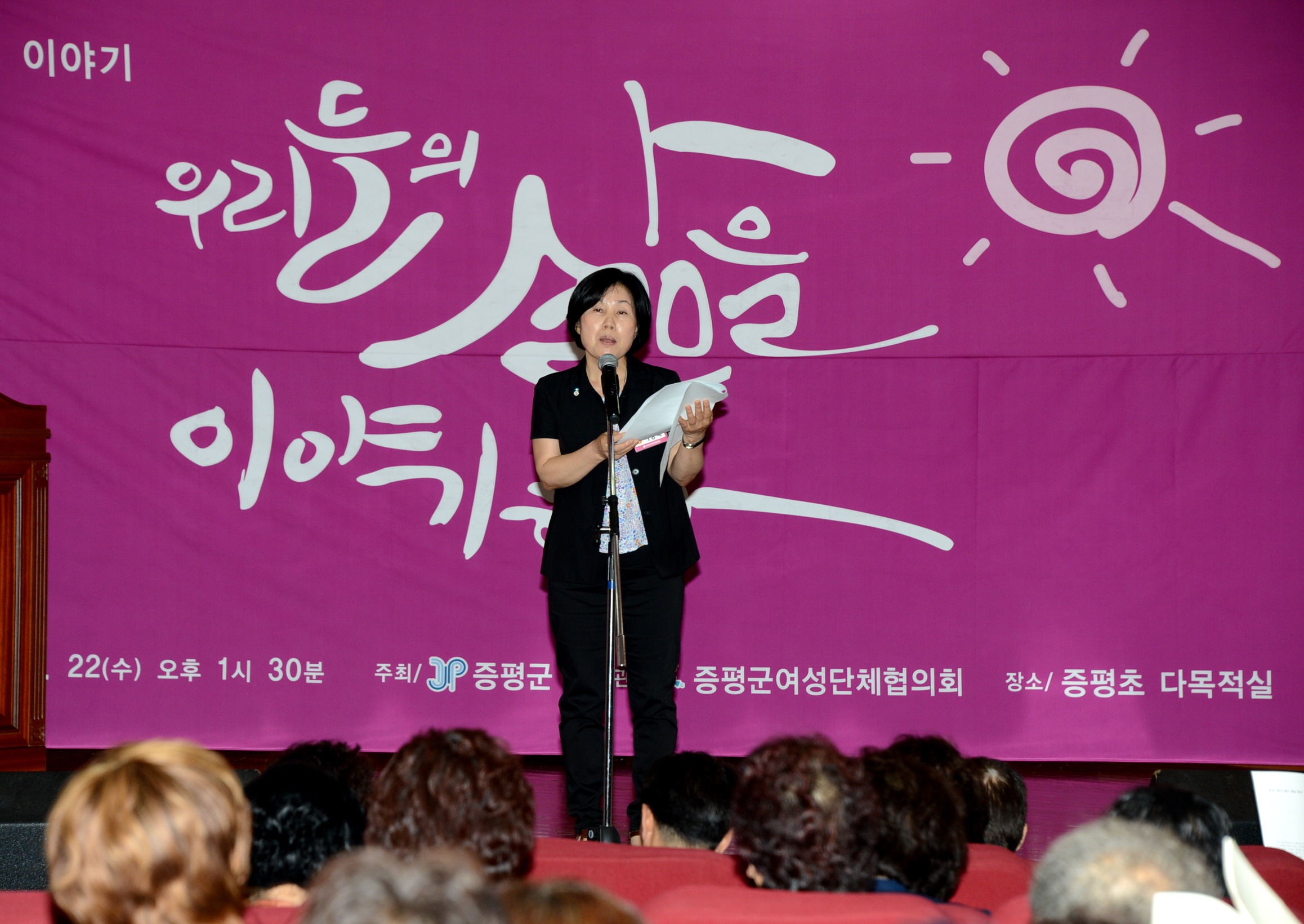 증평군여성단체협의회(회장 강춘희)는 22일 오후 13시 30분 증평초등학교 다목적실에서 지역 내 여성 150여명이 참석한 가운데 증평군 성 평등 기금사업의 일환인‘공감토크! 우리들의 이야기" 행사를 개최했다.(보도자료실 참조)