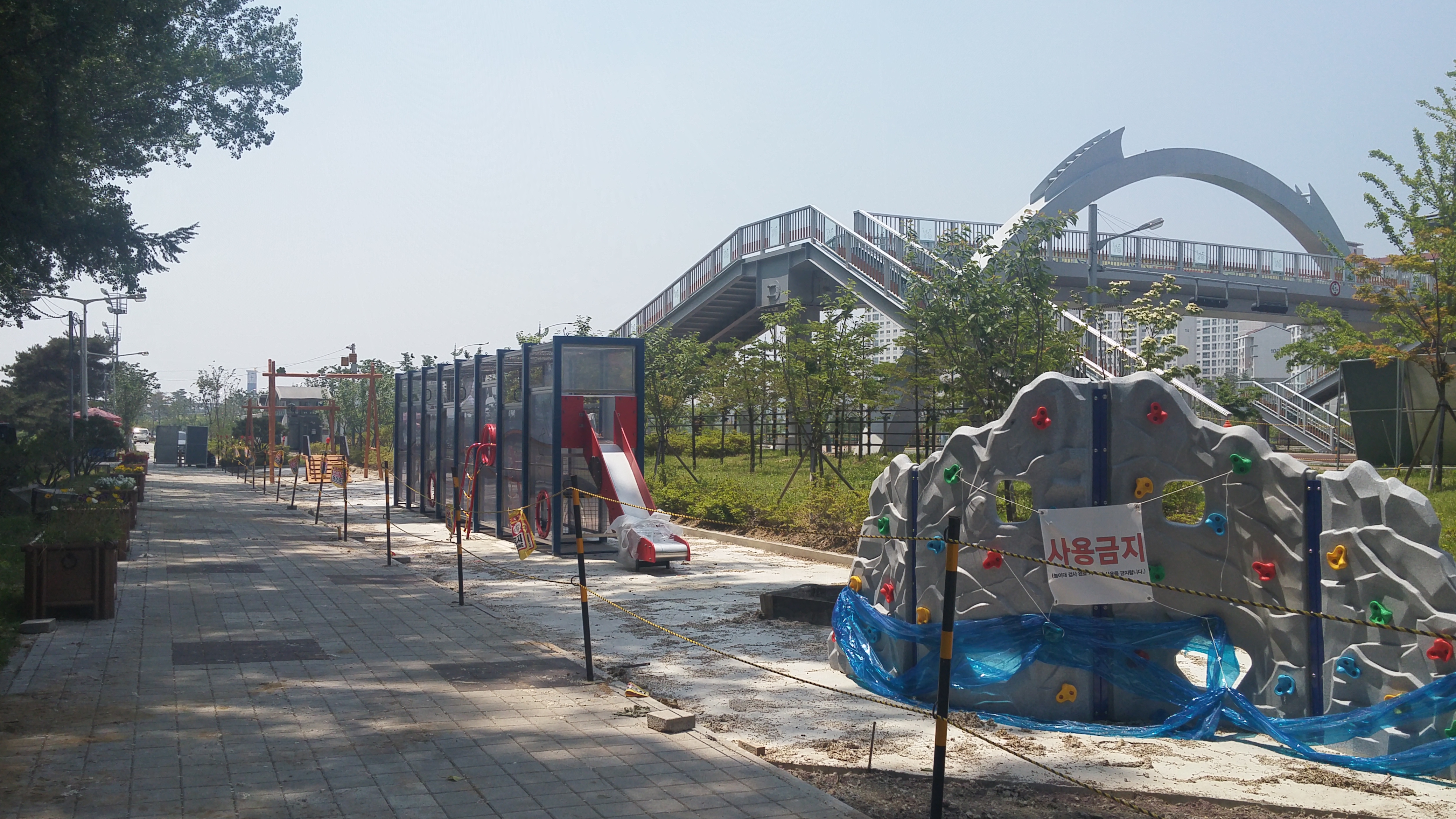 증평군이 보강천 미루나무숲 일원에 조성 중인 물빛공원이 7월 준공을 앞두고 막바지 공사에 한창이다.