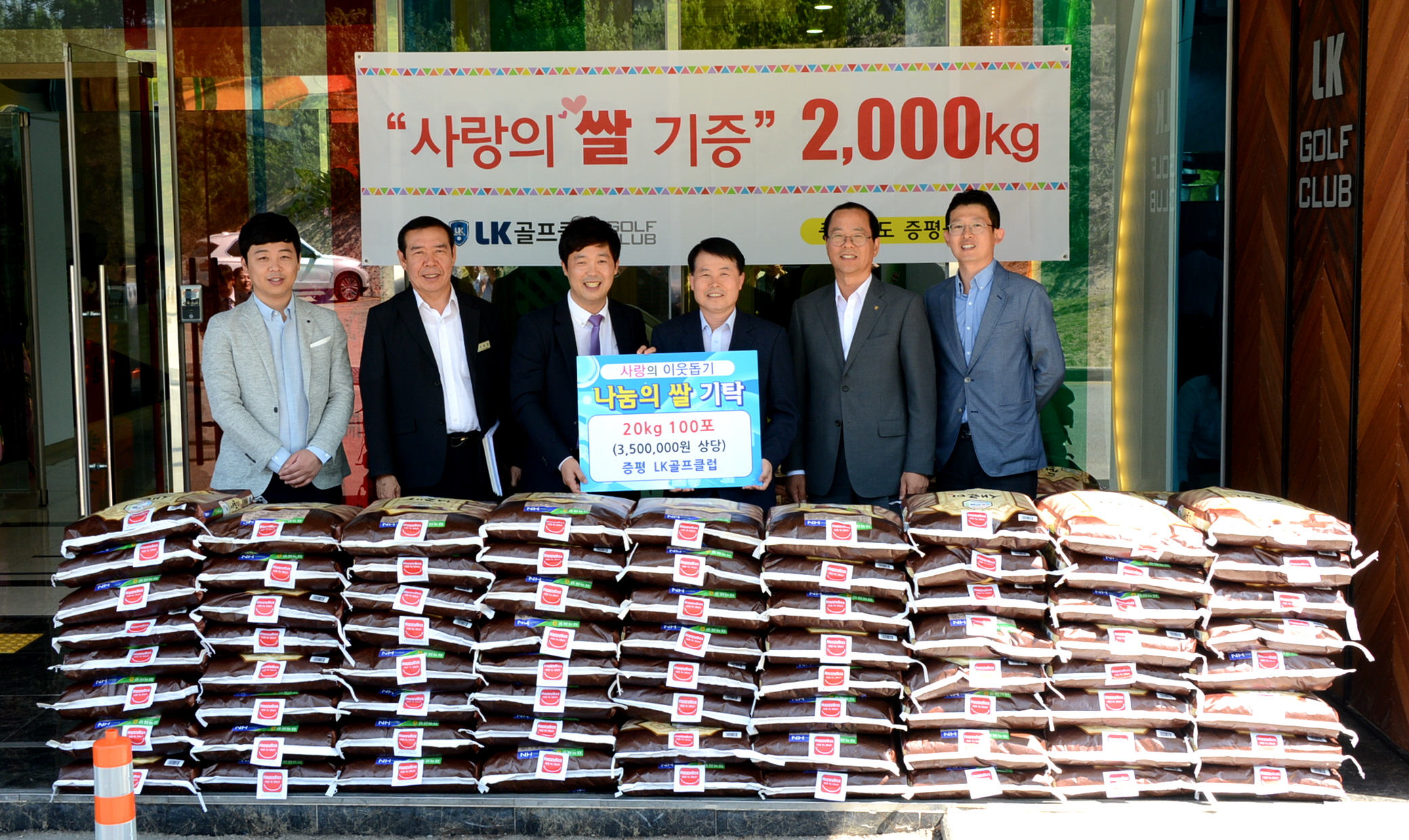 증평읍 미암리에 위치한 LK골프클럽(대표 이동우)은 19일 개업식을 맞아 축하 화환 대신 쌀로 받아 기부하는 지역사회공헌활동에 동참했다.(보도자료실 참조)