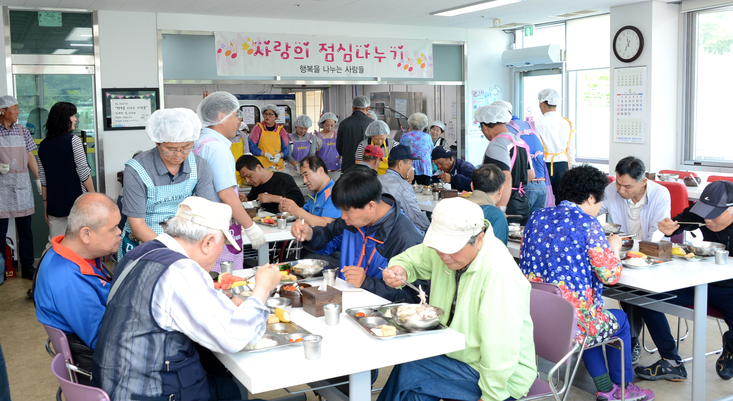 증평군장애인복지관(관장 정찬연)은 24일 지역 내에서 다양한 봉사활동을 펼치고 있는 행복을 나누는 모임(회장 김현섭)의 후원으로 관내 장애인 150여명에게 삼계탕을 무료 제공했다.(보도자료실 참조)