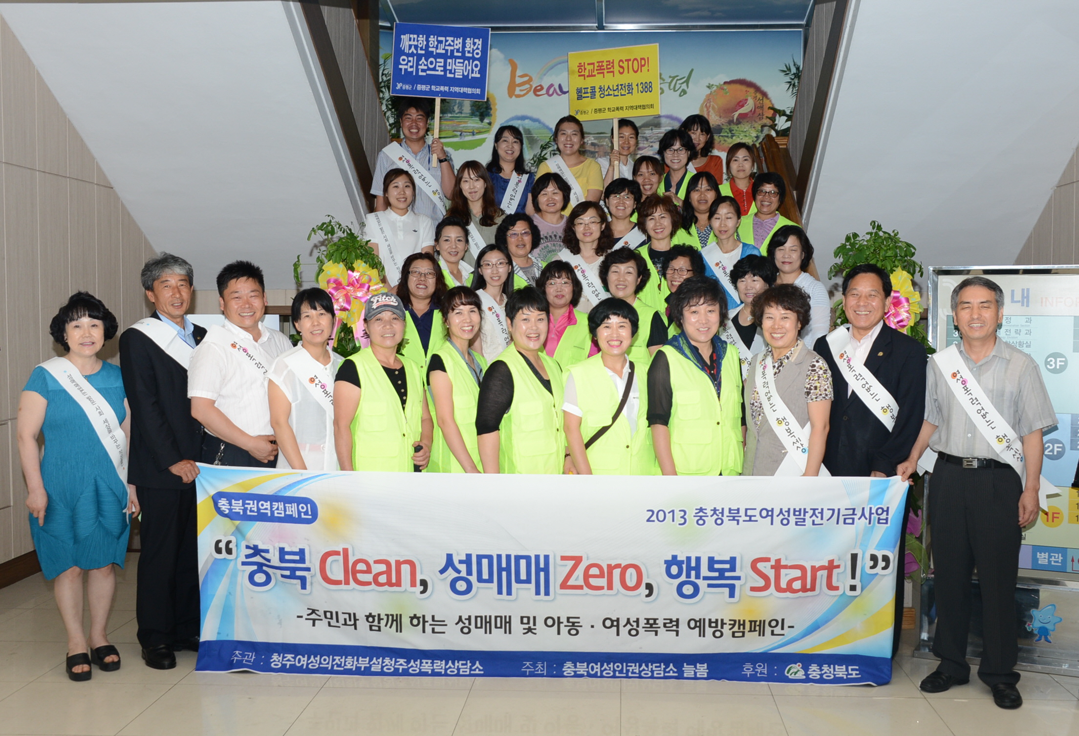 증평군은 19일 충북여성인권상담소 늘봄과 함께 ‘충북 Clean, 성매매 Zero, 행복 Start’라는 주제로 지역사회의 아동·여성·청소년 등이 안심하고 살 수 있는 안전한 지역을 만들기 위한 캠페인을 전개했다. [보도자료실 참조]