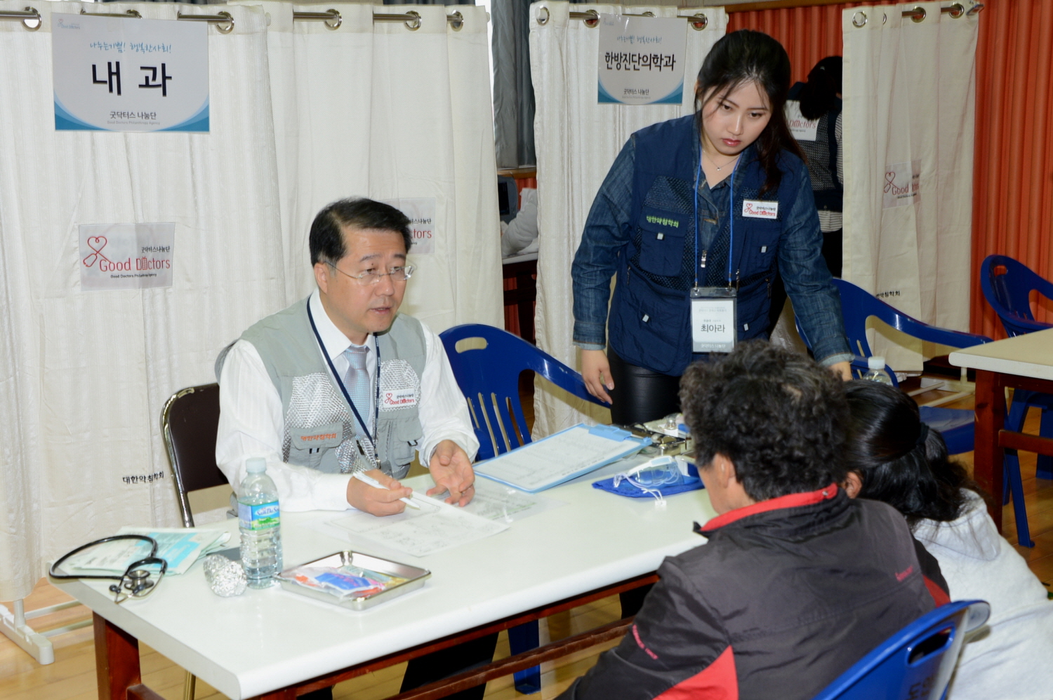 증평군은 19일 도안초등학교 체육관(이성관)에서 관내 주민 200여명을 대상으로 굿닥터스 나눔단의 한방 의료봉사 활동을 시작 “2015 농촌 재능 나눔 지원 사업”의 추진에 박차를 가했다.[보도자료실 참조]
